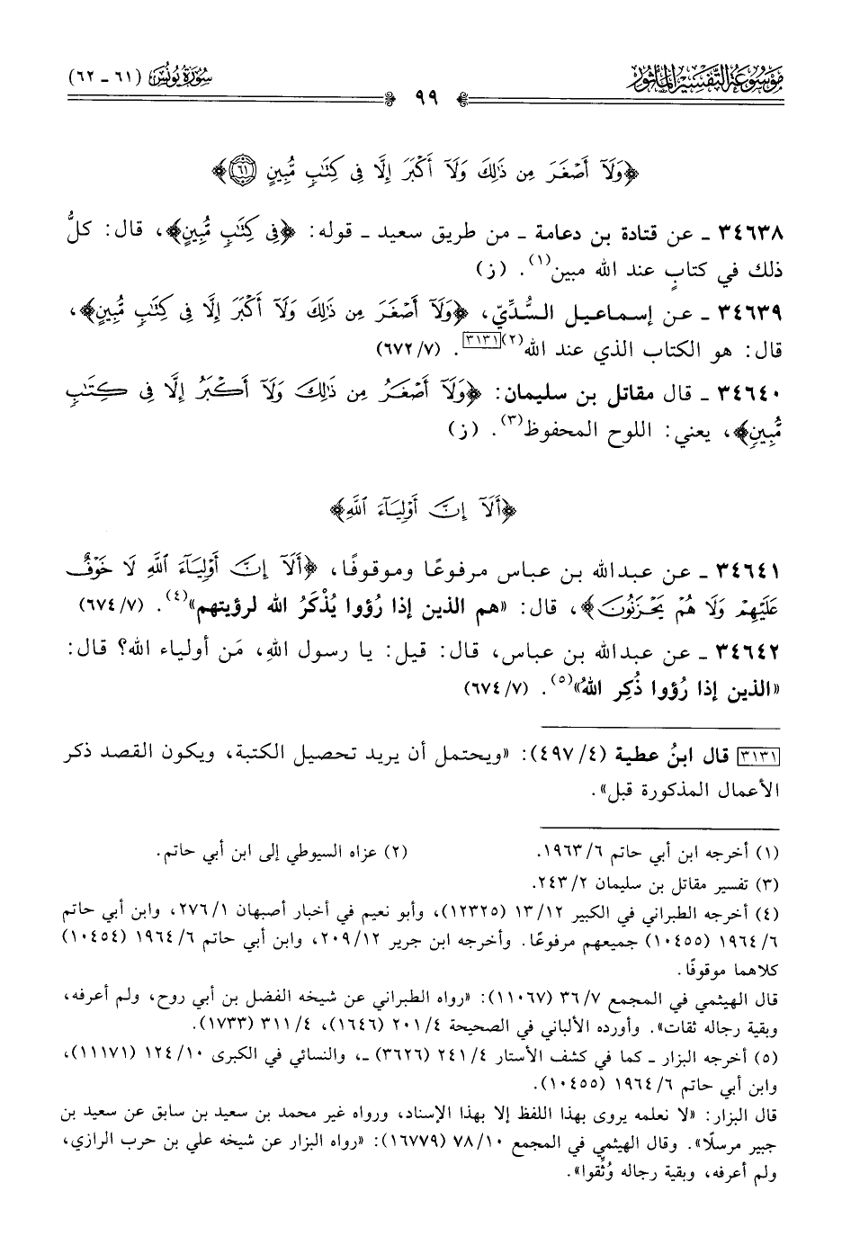 ٣٤٦٣٩ - عن إسماعيل السُّدِّيّ، {ولا أصغر من ذلكَ ولا أكبر إلا في كتاب مبين}، قال: هو الكتاب الذي عند الله (¬٢) [٣١٣١]. (٧/ ٦٧٢)