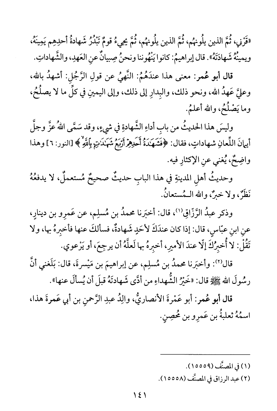 (¬٢) عبد الرزاق في المصنَّف (١٥٥٥٨).