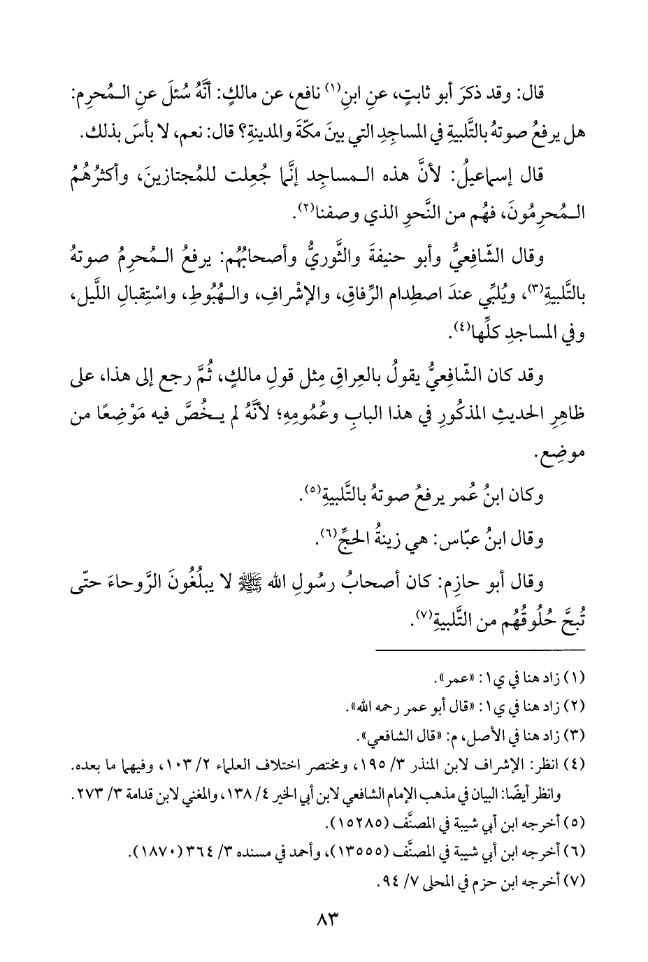 وقال أبو حازِم: كان أصحابُ رسُولِ اللَّه -صلى اللَّه عليه وسلم- لا يبلُغُونَ الرَّوحاءَ حتّى تُبحَّ حُلُوقُهُم من التَّلبيةِ (¬٧).