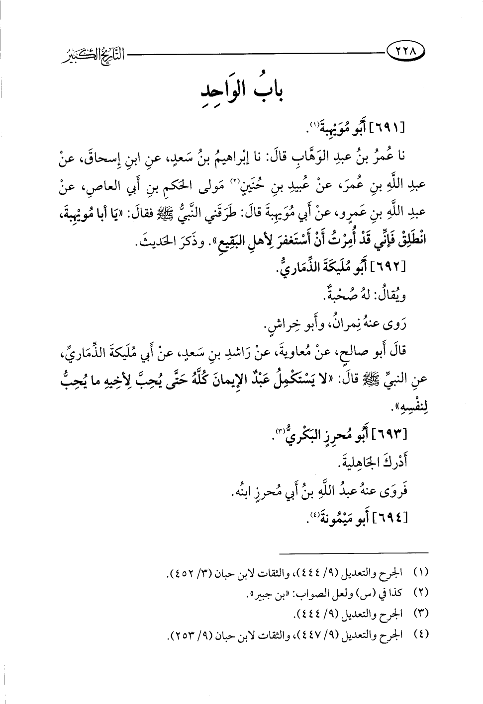 كتاب التاريخ الكبير للبخاري - ت الدباسي والنحال (اسم الجزء: 11)