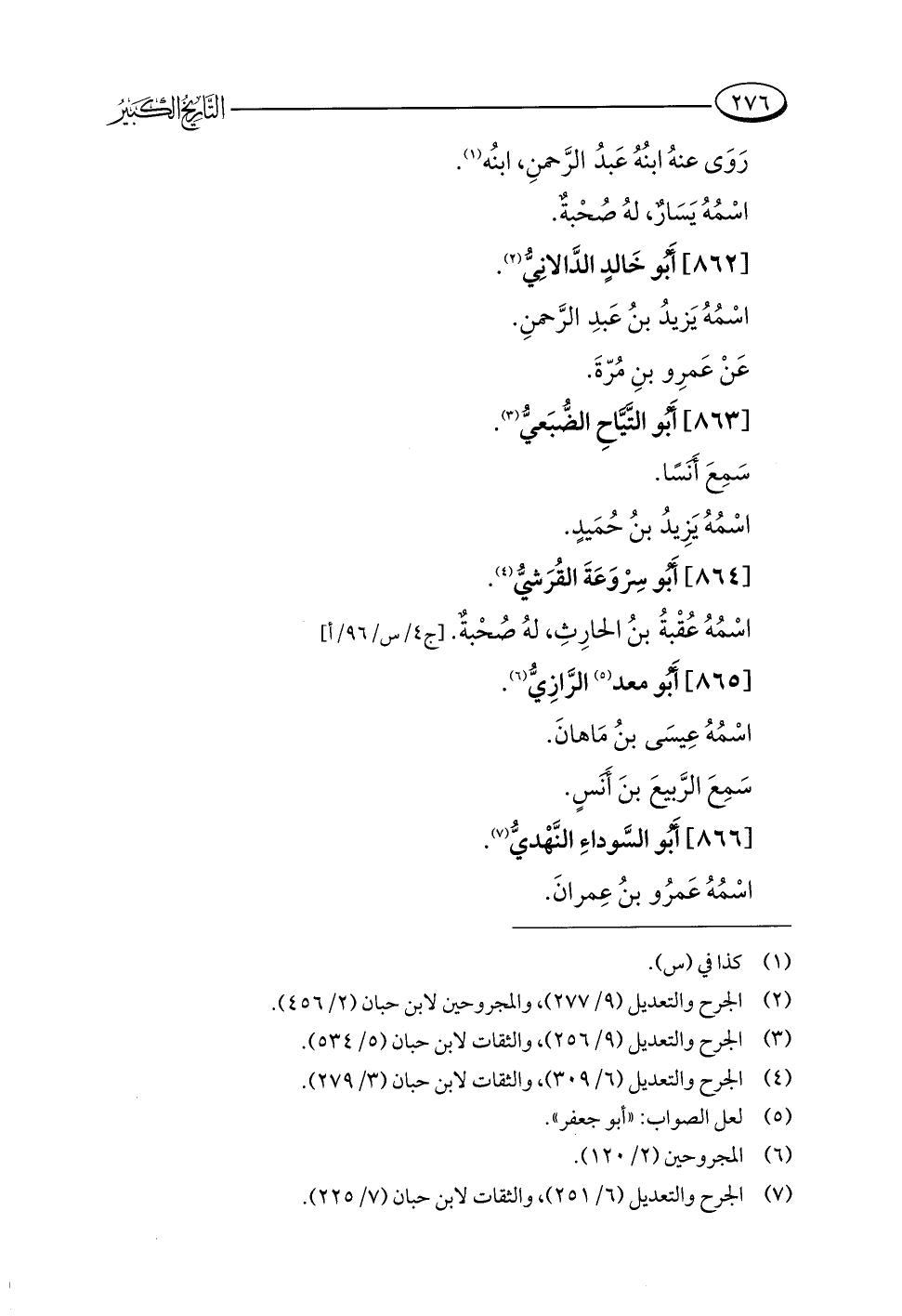 (¬٧) الجرح والتعديل (٦/ ٢٥١)، والثقات لابن حبان (٧/ ٢٢٥).