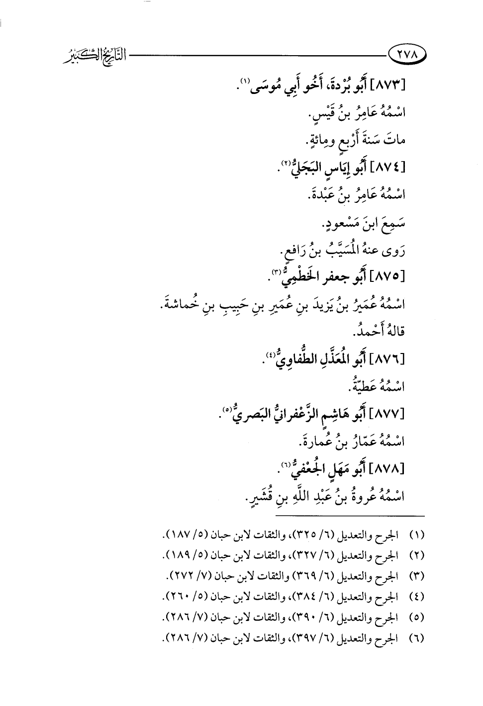 (¬٦) الجرح والتعديل (٦/ ٣٩٧)، والثقات لابن حبان (٧/ ٢٨٦).