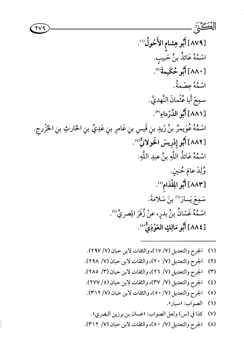 (¬٨) الجرح والتعديل (٧/ ٥٠)، والثقات لابن حبان (٧/ ٣١٢).