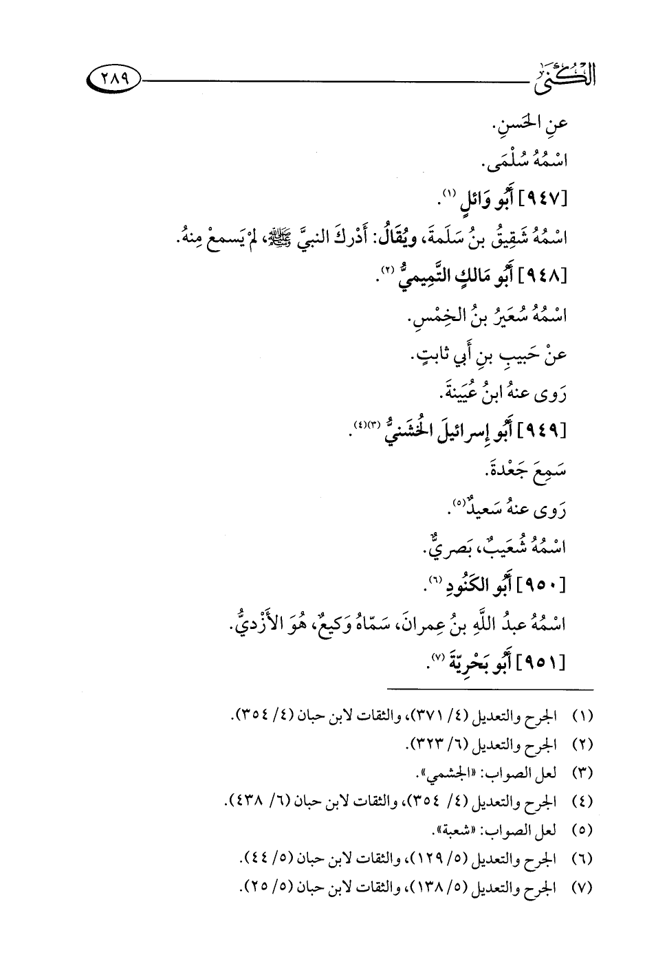 (¬٤) الجرح والتعديل (٤/ ٣٥٤)، والثقات لابن حبان (٦/ ٤٣٨).