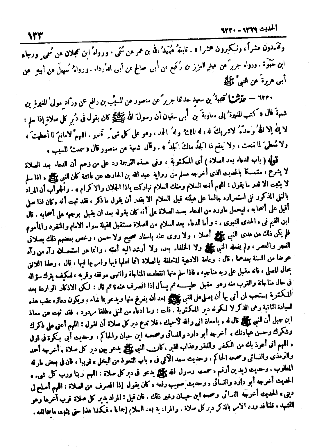 أَيِ الْمَكْتُوبَةِ وَفِي هَذِهِ التَّرْجَمَةِ رَدٌّ عَلَى مَنْ زَعَمَ أَنَّ الدُّعَاءَ بَعْدَ الصَّلَاةِ لَا يُشْرَعُ مُتَمَسِّكًا بِالْحَدِيثِ الَّذِي أَخْرَجَهُ مُسْلِمٌ مِنْ رِوَايَةِ عَبْدِ اللَّهِ بْنِ الْحَارِثِ عَنْ عَائِشَةَ كَانَ النَّبِيُّ صَلَّى اللَّهُ عَلَيْهِ وَسَلَّمَ إِذَا سَلَّمَ لَا يَثْبُتُ إِلَّا قَدْرَ مَا يَقُولُ اللَّهُمَّ أَنْتَ السَّلَامُ وَمِنْكَ السَّلَامُ تَبَارَكت يَاذَا الْجَلَالِ وَالْإِكْرَامِ وَالْجَوَابُ أَنَّ الْمُرَادَ بِالنَّفْيِ الْمَذْكُورِ نَفْيُ اسْتِمْرَارِهِ جَالِسًا عَلَى هَيْئَتِهِ قَبْلَ السَّلَامِ إِلَّا بِقَدْرِ أَنْ يَقُولَ مَا ذَكَرَ فَقَدْ ثَبَتَ أَنَّهُ كَانَ إِذَا صَلَّى أَقْبَلَ عَلَى أَصْحَابِهِ فَيُحْمَلُ مَا وَرَدَ مِنَ الدُّعَاءِ بَعْدَ الصَّلَاةِ عَلَى أَنَّهُ كَانَ يَقُولُهُ بَعْدَ أَنْ يقبل بِوَجْهِهِ على اصحابه قَالَ بن الْقَيِّمِ فِي الْهَدْيِ النَّبَوِيِّ وَأَمَّا الدُّعَاءُ بَعْدَ السَّلَامِ مِنَ الصَّلَاةِ مُسْتَقْبِلَ الْقِبْلَةِ سَوَاءٌ الْإِمَامُ وَالْمُنْفَرِدُ وَالْمَأْمُومُ فَلَمْ يَكُنْ ذَلِكَ مِنْ هَدْيِ النَّبِيِّ صَلَّى اللَّهُ عَلَيْهِ وَسَلَّمَ أَصْلًا وَلَا رُوِيَ عَنْهُ بِإِسْنَادٍ صَحِيحٍ وَلَا حَسَنٍ وَخَصَّ بَعْضَهُمْ ذَلِكَ بِصَلَاتَيِ الْفَجْرِ وَالْعَصْرِ وَلَمْ يَفْعَلْهُ النَّبِيُّ صَلَّى اللَّهُ عَلَيْهِ وَسَلَّمَ وَلَا الْخُلَفَاءُ بَعْدَهُ وَلَا أَرْشَدَ إِلَيْهِ أُمَّتَهُ وَإِنَّمَا هُوَ اسْتِحْسَانٌ رَآهُ مَنْ رَآهُ عِوَضًا مِنَ السُّنَّةِ بَعْدَهُمَا قَالَ وَعَامَّةُ الْأَدْعِيَةِ الْمُتَعَلِّقَةِ بِالصَّلَاةِ إِنَّمَا فَعَلَهَا فِيهَا وَأَمَرَ بِهَا فِيهَا قَالَ وَهَذَا اللَّائِقُ بِحَالِ الْمُصَلِّي فَإِنَّهُ مُقْبِلٌ عَلَى رَبِّهِ مُنَاجِيهِ فَإِذَا سَلَّمَ مِنْهَا انْقَطَعَتِ الْمُنَاجَاةُ وَانْتَهَى مَوْقِفُهُ وَقُرْبُهُ فَكَيْفَ يَتْرُكُ سُؤَالَهُ فِي حَالِ مُنَاجَاتِهِ وَالْقُرْبِ مِنْهُ وَهُوَ مُقْبِلٌ عَلَيْهِ ثُمَّ يَسْأَلُ إِذَا انْصَرَفَ عَنْهُ ثُمَّ قَالَ لَكِنَّ الْأَذْكَارَ الْوَارِدَةَ بَعْدَ الْمَكْتُوبَةِ يُسْتَحَبُّ لِمَنْ أَتَى بِهَا أَنْ يُصَلِّي عَلَى النَّبِيُّ صَلَّى اللَّهُ عَلَيْهِ وَسَلَّمَ بَعْدَ أَنْ يَفْرُغَ مِنْهَا وَيَدْعُوَ بِمَا شَاءَ وَيَكُونُ دُعَاؤُهُ عَقِبَ هَذِهِ الْعِبَادَةِ الثَّانِيَةِ وَهِيَ الذِّكْرُ لَا لِكَوْنِهِ دُبُرَ الْمَكْتُوبَةِ قُلْتُ وَمَا ادَّعَاهُ مِنَ النَّفْيِ مُطْلَقًا مَرْدُودٌ فَقَدْ ثَبَتَ عَنْ مُعَاذِ بْنِ جَبَلٍ أَنَّ النَّبِيَّ صَلَّى اللَّهُ عَلَيْهِ وَسَلَّمَ قَالَ لَهُ يَا مُعَاذُ إِنِّي وَاللَّهِ لَأُحِبُّكَ فَلَا تَدَعْ دُبُرَ كُلِّ صَلَاةٍ أَنْ تَقُولَ اللَّهُمَّ أَعِنِّي عَلَى ذِكْرِكَ وَشُكْرِكَ وَحُسْنِ عِبَادَتِكَ أَخْرَجَهُ أَبُو دَاوُد وَالنَّسَائِيّ وَصَححهُ بن حِبَّانَ وَالْحَاكِمُ وَحَدِيثُ أَبِي بَكْرَةَ فِي قَوْلِ اللَّهُمَّ إِنِّي أَعُوذُ بِكَ مِنَ الْكُفْرِ وَالْفَقْرِ وَعَذَابِ الْقَبْرِ كَانَ النَّبِيُّ صَلَّى اللَّهُ عَلَيْهِ وَسَلَّمَ يَدْعُو بِهِنَّ دُبُرَ كُلِّ صَلَاةٍ أَخْرَجَهُ أَحْمَدُ وَالتِّرْمِذِيُّ وَالنَّسَائِيُّ وَصَحَّحَهُ الْحَاكِمُ وَحَدِيثُ سَعْدٍ الْآتِي فِي بَابِ التَّعَوُّذِ مِنَ الْبُخْلِ قَرِيبًا فَإِنَّ فِي بَعْضِ طُرُقِهِ الْمَطْلُوبَ وَحَدِيثُ زَيْدِ بْنِ أَرْقَمَ سَمِعْتُ رَسُولَ اللَّهِ صَلَّى اللَّهُ عَلَيْهِ وَسَلَّمَ يَدْعُو فِي دُبُرِ كُلِّ صَلَاةٍ اللَّهُمَّ رَبَّنَا وَرَبَّ كُلِّ شَيْءٍ الْحَدِيثُ أَخْرَجَهُ أَبُو دَاوُدَ وَالنَّسَائِيُّ وَحَدِيثُ صُهَيْبٍ رَفَعَهُ كَانَ يَقُولُ إِذَا انْصَرَفَ مِنَ الصَّلَاةِ اللَّهُم