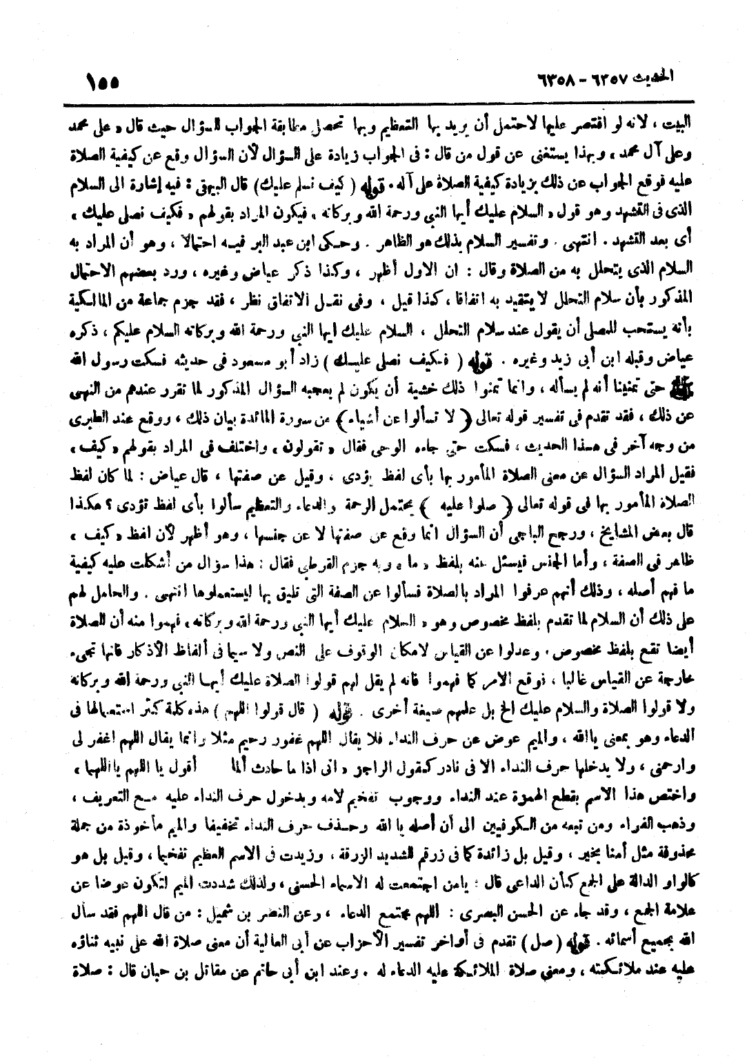 الْبَيْتِ لِأَنَّهُ لَوِ اقْتَصَرَ عَلَيْهَا لَاحْتَمَلَ أَنْ يُرِيدَ بِهَا التَّعْظِيمَ وَبِهَا تَحْصُلُ مُطَابَقَةُ الْجَوَابِ لِلسُّؤَالِ حَيْثُ قَالَ عَلَى مُحَمَّدٍ وَعَلَى آلِ مُحَمَّدٍ وَبِهَذَا يُسْتَغْنَى عَنْ قَوْلِ مَنْ قَالَ فِي الْجَوَابِ زِيَادَةٌ عَلَى السُّؤَالِ لِأَنَّ السُّؤَالَ وَقَعَ عَنْ كَيْفِيَّةِ الصَّلَاةِ عَلَيْهِ فَوَقَعَ الْجَوَابُ عَنْ ذَلِكَ بِزِيَادَةِ كَيْفِيَّةِ الصَّلَاةِ عَلَى آلِهِ قَوْلُهُ كَيْفَ نُسَلِّمُ عَلَيْكَ قَالَ الْبَيْهَقِيُّ فِيهِ إِشَارَةٌ إِلَى السَّلَامِ الَّذِي فِي التَّشَهُّدِ وَهُوَ قَوْلُ السَّلَامُ عَلَيْكَ أَيُّهَا النَّبِيُّ وَرَحْمَةُ اللَّهِ وَبَرَكَاتُهُ فَيَكُونُ الْمُرَادُ بِقولِهِمْ فَكَيْفَ نُصَلِّي عَلَيْكَ أَيْ بَعْدَ التَّشَهُّدِ انْتَهَى وَتَفْسِيرُ السَّلَامُ بِذَلِكَ هُوَ الظَّاهِر وَحكى بن عَبْدِ الْبَرِّ فِيهِ احْتِمَالًا وَهُوَ أَنَّ الْمُرَادَ بِهِ السَّلَامُ الَّذِي يَتَحَلَّلُ بِهِ مِنَ الصَّلَاةِ وَقَالَ إِنَّ الْأَوَّلَ أَظْهَرُ وَكَذَا ذَكَرَ عِيَاضٌ وَغَيْرُهُ وَرَدَّ بَعْضُهُمُ الِاحْتِمَالَ الْمَذْكُورَ بِأَنَّ سَلَامَ التَّحَلُّلِ لَا يَتَقَيَّدُ بِهِ اتِّفَاقًا كَذَا قِيلَ وَفِي نَقْلِ الِاتِّفَاقِ نَظَرٌ فَقَدْ جَزَمَ جَمَاعَةٌ مِنَ الْمَالِكِيَّةِ بِأَنَّهُ يُسْتَحَبُّ لِلْمُصَلِّي أَنْ يَقُولَ عِنْدَ سَلَامِ التَّحَلُّلِ السَّلَامُ عَلَيْكَ أَيُّهَا النَّبِيُّ وَرَحْمَةُ اللَّهِ وَبَرَكَاتُهُ السَّلَامُ عَلَيْكُمْ ذَكَرَهُ عِيَاضٌ وَقَبله بن أَبِي زَيْدٍ وَغَيْرُهُ قَوْلُهُ فَكَيْفَ نُصَلِّي عَلَيْكَ زَادَ أَبُو مَسْعُودٍ فِي حَدِيثِهِ فَسَكَتَ رَسُولِ اللَّهِ صَلَّى اللَّهُ عَلَيْهِ وَسَلَّمَ حَتَّى تَمَنَّيْنَا أَنَّهُ لَمْ يَسْأَلْهُ وَإِنَّمَا تَمَنَّوْا ذَلِكَ خَشْيَةَ أَنْ يَكُونَ لَمْ يُعْجِبْهُ السُّؤَالُ الْمَذْكُورُ لِمَا تَقَرَّرَ عِنْدَهُمْ مِنَ النَّهْيِ عَنْ ذَلِكَ فَقَدْ تَقَدَّمَ فِي تَفْسِيرِ قَوْلِهِ تَعَالَى لَا تَسْأَلُوا عَن أَشْيَاء مِنْ سُورَةِ الْمَائِدَةِ بَيَانُ ذَلِكَ وَوَقَعَ عِنْدَ الطَّبَرِيِّ مِنْ وَجْهٍ آخَرَ فِي هَذَا الْحَدِيثِ فَسَكَتَ حَتَّى جَاءَهُ الْوَحْيُ فَقَالَ تَقُولُونَ وَاخْتُلِفَ فِي الْمُرَادِ بِقولِهِمْ كَيْفَ فَقِيلَ الْمُرَادُ السُّؤَالُ عَنْ مَعْنَى الصَّلَاةِ الْمَأْمُورِ بِهَا بِأَيِّ لَفْظٍ يُؤَدَّى وَقِيلَ عَنْ صِفَتِهَا قَالَ عِيَاضٌ لَمَّا كَانَ لَفْظُ الصَّلَاةِ الْمَأْمُورِ بِهَا فِي قَوْلِهِ تَعَالَى صلوا عَلَيْهِ يَحْتَمِلُ الرَّحْمَةَ وَالدُّعَاءَ وَالتَّعْظِيمَ سَأَلُوا بِأَيِّ لَفْظٍ تُؤَدَّى هَكَذَا قَالَ بَعْضُ الْمَشَايِخِ وَرَجَّحَ الْبَاجِيُّ أَنَّ السُّؤَالَ إِنَّمَا وَقَعَ عَنْ صِفَتِهَا لَا عَنْ جِنْسِهَا وَهُوَ أَظْهَرُ لِأَنَّ لَفْظَ كَيْفَ ظَاهر فِي الصّفة واما الْجِنْس فيسئل عَنْهُ بِلَفْظِ مَا وَبِهِ جَزَمَ الْقُرْطُبِيُّ فَقَالَ هَذَا سُؤَالُ مَنْ أَشْكَلَتْ عَلَيْهِ كَيْفِيَّةُ مَا فُهِمَ أَصْلُهُ وَذَلِكَ أَنَّهُمْ عَرَفُوا الْمُرَادَ بِالصَّلَاةِ فَسَأَلُوا عَنِ الصِّفَةِ الَّتِي تَلِيقُ بِهَا لِيَسْتَعْمِلُوهَا انْتَهَى وَالْحَامِلُ لَهُمْ عَلَى ذَلِكَ أَنَّ السَّلَامَ لَمَّا تَقَدَّمَ بِلَفْظٍ مَخْصُوصٍ وَهُوَ السَّلَامُ عَلَيْكَ أَيُّهَا النَّبِيُّ وَرَحْمَةُ اللَّهِ وَبَرَكَاتُهُ فَهِمُوا مِنْهُ أَنَّ الصَّلَاةَ أَيْضًا تَقَعُ بِلَفْظٍ مَخْصُوصٍ وَعَدَلُوا عَن الْقيَاس لَا مَكَان الْوُقُوفِ عَلَى النَّصِّ وَلَا سِيَّمَا فِي أَلْفَاظِ الْأَذْكَارِ فَإِنَّهَا تَجِيءُ خَارِجَةً عَنِ الْقِيَاسِ غَالِبًا فَوَقَعَ الْأَمْرُ كَمَا فَهِمُوا فَإِنَّهُ لَمْ يَقُلْ لَه