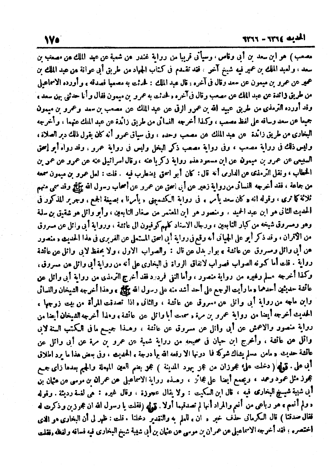 مُصعب هُوَ بن سَعْدِ بْنِ أَبِي وَقَّاصٍ وَسَيَأْتِي قَرِيبًا مِنْ رِوَايَةِ غُنْدَرٍ عَنْ شُعْبَةَ عَنْ عَبْدِ الْمَلِكِ عَنْ مُصْعَبِ بْنِ سَعْدٍ وَلِعَبْدِ الْمَلِكِ بْنِ عُمَيْرٍ فِيهِ شَيْخٌ آخَرُ فَقَدْ تَقَدَّمَ فِي كِتَابِ الْجِهَادِ مِنْ طَرِيقِ أَبِي عَوَانَةَ عَنْ عَبْدِ الْمَلِكِ بْنِ عُمَيْرٍ عَنْ عَمْرِو بْنِ مَيْمُونٍ عَنْ سَعْدٍ وَقَالَ فِي آخِرِهِ قَالَ عَبْدُ الْمَلِكِ فَحَدَّثْتُ بِهِ مُصْعَبًا فَصَدَّقَهُ وَأَوْرَدَهُ الْإِسْمَاعِيلِيُّ مِنْ طَرِيقِ زَائِدَةَ عَنْ عَبْدِ الْمَلِكِ عَنْ مُصْعَبٍ وَقَالَ فِي آخِرِهِ فَحَدَّثْتُ بِهِ عَمْرَو بْنَ مَيْمُونٍ فَقَالَ وَأَنَا حَدَّثَنِي بِهِنَّ سَعْدٌ وَقَدْ أَوْرَدَهُ التِّرْمِذِيُّ مِنْ طَرِيقِ عُبَيْدِ اللَّهِ بْنِ عَمْرٍو الرَّقِّيِّ عَنْ عَبْدِ الْمَلِكِ عَنْ مُصْعَبِ بْنِ سَعْدٍ وَعَمْرِو بْنِ مَيْمُونٍ جَمِيعًا عَنْ سَعْدٍ وَسَاقَهُ عَلَى لَفْظِ مُصْعَبٍ وَكَذَا أَخْرَجَهُ النَّسَائِيُّ مِنْ طَرِيقِ زَائِدَةَ عَنْ عَبْدِ الْمَلِكِ عَنْهُمَا وَأَخْرَجَهُ الْبُخَارِيُّ مِنْ طَرِيقِ زَائِدَةَ عَنْ عَبْدِ الْمَلِكِ عَنْ مُصْعَبٍ وَحْدَهُ وَفِي سِيَاقِ عَمْرٍو أَنَّهُ كَانَ يَقُولُ ذَلِكَ دُبُرَ الصَّلَاةِ وَلَيْسَ ذَلِكَ فِي رِوَايَةِ مُصْعَبٍ وَفِي رِوَايَةِ مُصْعَبٍ ذِكْرُ الْبُخْلِ وَلَيْسَ فِي رِوَايَةِ عَمْرٍو وَقَدْ رَوَاهُ أَبُو إِسْحَاقَ السَّبِيعِيُّ عَن عَمْرو بن مَيْمُون عَن بن مَسْعُودٍ هَذِهِ رِوَايَةُ زَكَرِيَّا عَنْهُ وَقَالَ إِسْرَائِيلُ عَنْهُ عَنْ عَمْرٍو عَنْ عُمَرَ بْنِ الْخَطَّابِ وَنَقَلَ التِّرْمِذِيُّ عَنِ الدَّارِمِيِّ أَنَّهُ قَالَ كَانَ أَبُو إِسْحَاقَ يَضْطَرِبُ فِيهِ قُلْتُ لَعَلَّ عَمْرَو بْنَ مَيْمُونٍ سَمِعَهُ مِنْ جَمَاعَةٍ فَقَدْ أَخْرَجَهُ النَّسَائِيُّ مِنْ رِوَايَةِ زُهَيْرٍ عَنْ أَبِي إِسْحَاقَ عَنْ عَمْرٍو عَنْ أَصْحَابِ رَسُولِ اللَّهِ صَلَّى اللَّهُ عَلَيْهِ وَسَلَّمَ وَقَدْ سَمَّى مِنْهُمْ ثَلَاثَةً كَمَا تَرَى وَقَوْلُهُ إِنَّهُ كَانَ سَعْدٌ يَأْمُرُ فِي رِوَايَةِ الْكُشْمِيهَنِيِّ يَأْمُرُنَا بِصِيغَةِ الْجَمْعِ وَجَرِيرٌ الْمَذْكُور فِي الحَدِيث الثَّانِي هُوَ بن عبد الحميد وَمَنْصُور هُوَ بن الْمُعْتَمِرِ مِنْ صِغَارِ التَّابِعِينَ وَأَبُو وَائِلٍ هُوَ شَقِيقُ بْنُ سَلَمَةَ وَهُوَ وَمَسْرُوقٌ شَيْخُهُ مِنْ كِبَارِ التَّابِعِينَ وَرِجَالُ الْإِسْنَادِ كُلُّهُمْ كُوفِيُّونَ إِلَى عَائِشَةَ وَرِوَايَةُ أَبِي وَائِلٍ عَنْ مَسْرُوقٍ مِنَ الْأَقْرَانِ وَقَدْ ذَكَرَ أَبُو عَلِيٍّ الْجَيَّانِيُّ أَنَّهُ وَقَعَ فِي رِوَايَةِ أَبِي إِسْحَاقَ الْمُسْتَمْلِي عَنِ الْفَرَبْرِيِّ فِي هَذَا الْحَدِيثِ مَنْصُورٌ عَنْ أَبِي وَائِلٍ وَمَسْرُوقٌ عَنْ عَائِشَةَ بِوَاوٍ بَدَلَ عَنْ قَالَ وَالصَّوَابُ الْأَوَّلُ وَلَا يُحْفَظُ لِأَبِي وَائِلٍ عَنْ عَائِشَةَ رِوَايَةٌ قُلْتُ أَمَّا كَوْنُهُ الصَّوَابَ فَصَوَابٌ لِاتِّفَاقِ الرُّوَاةِ فِي الْبُخَارِيِّ عَلَى أَنَّهُ مِنْ رِوَايَةِ أَبِي وَائِلٍ عَنْ مَسْرُوقٍ وَكَذَا أَخْرَجَهُ مُسْلِمٌ وَغَيْرُهُ مِنْ رِوَايَةِ مَنْصُورٍ وَأَمَّا النَّفْيُ فَمَرْدُودٌ فَقَدْ أَخْرَجَ التِّرْمِذِيُّ مِنْ رِوَايَةِ أَبِي وَائِلٍ عَنْ عَائِشَةَ حَدِيثَيْنِ أَحَدُهُمَا مَا رَأَيْت الْوَجَع عَلَى أَحَد أَشَدّ مِنْهُ عَلَى رَسُولِ اللَّهِ صَلَّى اللَّهُ عَلَيْهِ وَسَلَّمَ وَهَذَا أخرجه الشَّيْخَانِ وَالنَّسَائِيّ وبن مَاجَهْ مِنْ رِوَايَةِ أَبِي وَائِلٍ عَنْ مَسْرُوقٍ عَنْ عَائِشَةَ وَالثَّانِي إِذَا تَصَدَّقَتِ الْمَرْأَةُ مِنْ بَيْتِ زَوْجِهَا الْحَدِيثُ أَخْرَجَهُ أَيْضًا مِنْ رِوَايَةِ عَمْرِو بْنِ مُرَّةَ سَمِعْتُ أَب
