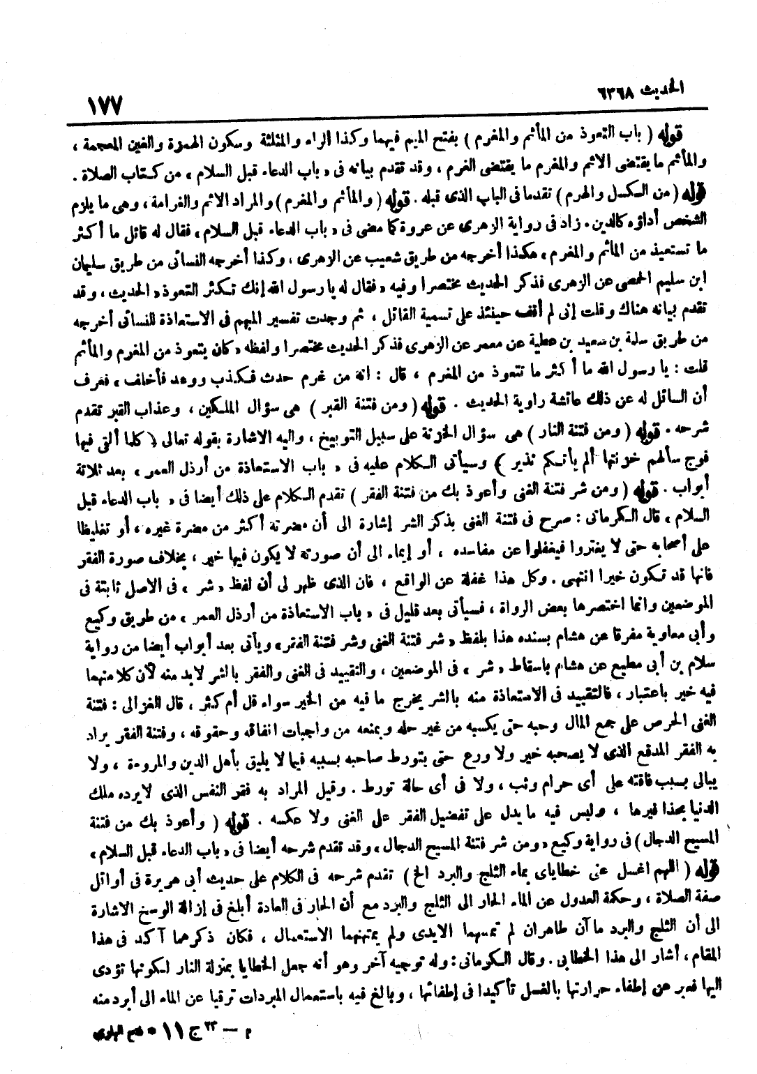 [6368] قَوْلُهُ مِنَ الْكَسَلِ وَالْهَرَمِ تَقَدَّمَا فِي الْبَابِ الَّذِي قَبْلَهُ قَوْلُهُ وَالْمَأْثَمِ وَالْمَغْرَمِ وَالْمُرَادُ الْإِثْمُ وَالْغَرَامَةُ وَهِيَ مَا يَلْزَمُ الشَّخْصَ أَدَاؤُهُ كَالدَّيْنِ زَادَ فِي رِوَايَةِ الزُّهْرِيِّ عَنْ عُرْوَةَ كَمَا مَضَى فِي بَابِ الدُّعَاءُ قَبْلَ السَّلَامِ فَقَالَ لَهُ قَائِلٌ مَا أَكْثَرَ مَا تَسْتَعِيذُ مِنَ الْمَأْثَمِ وَالْمَغْرَمِ هَكَذَا أَخْرَجَهُ مِنْ طَرِيقِ شُعَيْبٍ عَنِ الزُّهْرِيِّ وَكَذَا أَخْرَجَهُ النَّسَائِيُّ مِنْ طَرِيقِ سُلَيْمَانَ بْنِ سُلَيْمٍ الْحِمْصِيِّ عَنِ الزُّهْرِيِّ فَذَكَرَ الْحَدِيثَ مُخْتَصَرًا وَفِيهِ فَقَالَ لَهُ يَا رَسُولَ اللَّهِ إِنَّكَ تُكْثِرُ التَّعَوُّذَ الْحَدِيثَ وَقَدْ تَقَدَّمَ بَيَانُهُ هُنَاكَ وَقُلْتُ إِنِّي لَمْ أَقِفْ حِينَئِذٍ عَلَى تَسْمِيَةِ الْقَائِلِ ثُمَّ وَجَدْتُ تَفْسِيرَ الْمُبْهَمِ فِي الِاسْتِعَاذَةِ لِلنَّسَائِيِّ أَخْرَجَهُ مِنْ طَرِيقِ سَلَمَةَ بْنِ سَعِيدِ بْنِ عَطِيَّةَ عَنْ مَعْمَرٍ عَنِ الزُّهْرِيِّ فَذَكَرَ الْحَدِيثَ مُخْتَصَرًا وَلَفْظُهُ كَانَ يَتَعَوَّذُ مِنَ الْمَغْرَمِ وَالْمَأْثَمِ قُلْتُ يَا رَسُولَ اللَّهِ مَا أَكْثَرُ مَا تَتَعَوَّذُ مِنَ الْمَغْرَمِ قَالَ إِنَّهُ مَنْ غَرِمَ حَدَّثَ فَكَذَبَ وَوَعَدَ فَأَخْلَفَ فَعُرِفَ أَنَّ السَّائِلَ لَهُ عَنْ ذَلِكَ عَائِشَةُ رَاوِيَةُ الْحَدِيثِ قَوْلُهُ وَمِنْ فِتْنَةِ الْقَبْرِ هِيَ سُؤَالُ الْمَلَكَيْنِ وَعَذَابُ الْقَبْرِ تَقَدَّمَ شَرْحُهُ قَوْلُهُ وَمِنْ فِتْنَةِ النَّارِ هِيَ سُؤَالُ الْخَزَنَةِ عَلَى سَبِيلِ التَّوْبِيخِ وَإِلَيْهِ الْإِشَارَةُ بِقَوْلِهِ تَعَالَى كُلَّمَا أُلْقِيَ فِيهَا فَوْجٌ سَأَلَهُمْ خَزَنَتُهَا أَلَمْ يَأْتِكُمْ نَذِير وَسَيَأْتِي الْكَلَامُ عَلَيْهِ فِي بَابِ الِاسْتِعَاذَةُ مِنْ أَرْذَلِ الْعُمُرِ بَعْدَ ثَلَاثَةِ أَبْوَابٍ قَوْلُهُ وَمِنْ شَرِّ فِتْنَةِ الْغِنَى وَأَعُوذُ بِكَ مِنْ فِتْنَةِ الْفَقْرِ تَقَدَّمَ الْكَلَامُ عَلَى ذَلِكَ أَيْضًا فِي بَابِ الدُّعَاءُ قَبْلَ السَّلَامِ قَالَ الْكَرْمَانِيُّ صَرَّحَ فِي فِتْنَةِ الْغِنَى بِذِكْرِ الشَّرِّ إِشَارَةً إِلَى أَنَّ مَضَرَّتَهُ أَكْثَرُ مِنْ مَضَرَّةِ غَيْرِهِ أَوْ تَغْلِيظًا عَلَى أَصْحَابِهِ حَتَّى لَا يَغْتَرُّوا فَيَغْفُلُوا عَنْ مَفَاسِدِهِ أَوْ إِيمَاءً إِلَى أَنَّ صُورَتَهُ لَا يَكُونُ فِيهَا خَيْرٌ بِخِلَافِ صُورَةِ الْفَقْرِ فَإِنَّهَا قَدْ تَكُونُ خَيْرًا انْتَهَى وَكُلُّ هَذَا غَفْلَةٌ عَنِ الْوَاقِعِ فَإِنَّ الَّذِي ظَهَرَ لِي أَنَّ لَفْظَ شَرِّ فِي الْأَصْلِ ثَابِتَةٌ فِي الْمَوْضِعَيْنِ وَإِنَّمَا اخْتَصَرَهَا بَعْضُ الرُّوَاةِ فَسَيَأْتِي بَعْدَ قَلِيلٍ فِي بَابِ الِاسْتِعَاذَةُ مِنْ أَرْذَلِ الْعُمُرِ مِنْ طَرِيقِ وَكِيعٍ وَأَبِي مُعَاوِيَةَ مُفَرَّقًا عَنْ هِشَامٍ بِسَنَدِهِ هَذَا بِلَفْظِ شَرِّ فِتْنَةِ الْغِنَى وَشَرِّ فِتْنَةِ الْفَقْرِ وَيَأْتِي بَعْدَ أَبْوَابٍ أَيْضًا مِنْ رِوَايَةِ سَلَّامِ بْنِ أَبِي مُطِيعٍ عَنْ هِشَامٍ بِإِسْقَاطِ شَرِّ فِي الْمَوْضِعَيْنِ وَالتَّقْيِيدُ فِي الْغِنَى وَالْفَقْرِ بِالشَّرِّ لَا بُدَّ مِنْهُ لِأَنَّ كُلًّا مِنْهُمَا فِيهِ خَيْرٌ بِاعْتِبَارٍ فَالتَّقْيِيدُ فِي الِاسْتِعَاذَةِ مِنْهُ بِالشَّرِّ يُخْرِجُ مَا فِيهِ مِنَ الْخَيْرِ سَوَاءٌ قَلَّ أَمْ كَثُرَ قَالَ الْغَزَالِيُّ فِتْنَةُ الْغِنَى الْحِرْصُ عَلَى جَمْعِ الْمَالِ وَحُبُّهُ حَتَّى يكسبه من غير حلّه وبمنعه مِنْ وَاجِبَاتِ إِنْفَاقِهِ وَحُقُوقِهِ وَفِتْنَةُ الْفَقْرِ يُرَادُ بِهِ الْفَقْرُ الْمُدْقِعُ الَّذِي لَا يَصْحَبُهُ خَيْرٌ وَلَا وَرَعٌ حَتَّى يَتَوَرَّطَ ص