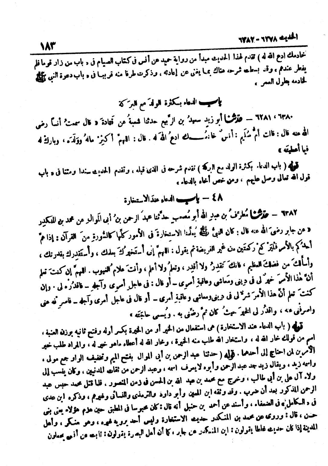 مَعَ الْبَرَكَةِ تَقَدَّمَ شَرْحُهُ فِي الَّذِي قَبْلَهُ وَتَقَدَّمَ الْحَدِيثُ سَنَدًا وَمَتْنًا فِي بَابِ قَوْلِ اللَّهِ تَعَالَى وَصَلِّ عَلَيْهِمْ وَمن خص اخاه بِالدُّعَاءِ قَوْلُهُ بَاب الدُّعَاءِ عِنْدَ الِاسْتِخَارَةِ هِيَ اسْتِفْعَالٌ مِنَ الْخَيْرِ أَوْ مِنَ الْخِيَرَةِ بِكَسْرِ أَوَّلِهِ وَفَتْحِ ثَانِيهِ بِوَزْنِ الْعِنَبَةِ اسْمٌ مِنْ قَوْلِكَ خَارَ اللَّهُ لَهُ وَاسْتَخَارَ اللَّهَ طَلَبَ مِنْهُ الْخِيَرَةَ وَخَارَ اللَّهُ لَهُ أَعْطَاهُ مَا هُوَ خَيْرٌ لَهُ وَالْمُرَادُ طَلَبُ خَيْرِ الْأَمْرَيْنِ لِمَنَ احْتَاجَ إِلَى أَحَدِهِمَا