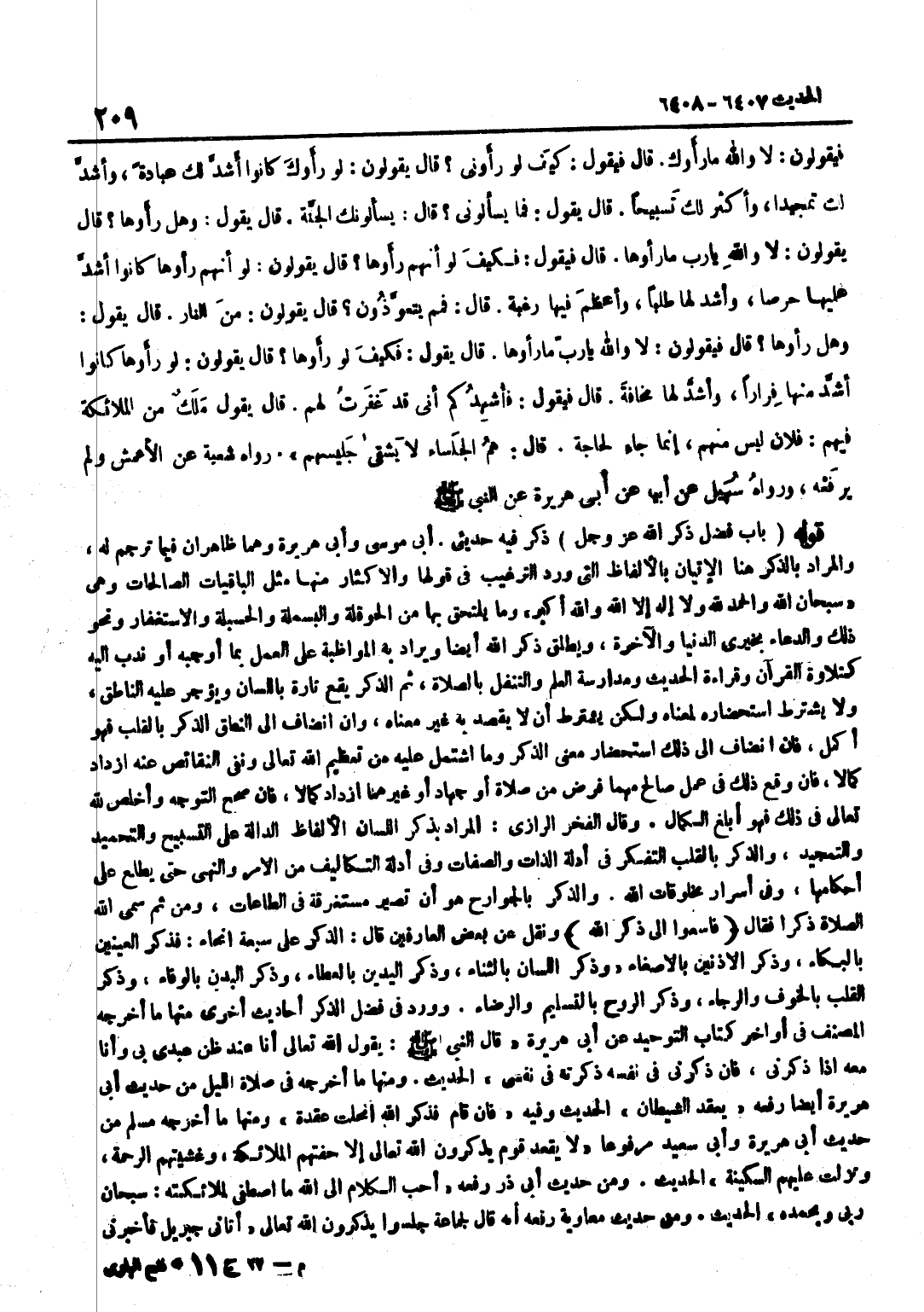 ذَكَرَ فِيهِ حَدِيثَيْ أَبِي مُوسَى وَأَبِي هُرَيْرَةَ وَهُمَا ظَاهِرَانِ فِيمَا تَرْجَمَ لَهُ وَالْمُرَادُ بِالذِّكْرِ هُنَا الْإِتْيَانُ بِالْأَلْفَاظِ الَّتِي وَرَدَ التَّرْغِيبُ فِي قَوْلِهَا وَالْإِكْثَارُ مِنْهَا مِثْلِ الْبَاقِيَاتِ الصَّالِحَاتِ وَهِيَ سُبْحَانَ اللَّهِ وَالْحَمْدُ لِلَّهِ وَلَا إِلَهَ إِلَّا اللَّهُ وَاللَّهُ أَكْبَرُ وَمَا يَلْتَحِقُ بِهَا مِنَ الْحَوْقَلَةِ وَالْبَسْمَلَةِ وَالْحَسْبَلَةِ وَالِاسْتِغْفَارِ وَنَحْوِ ذَلِكَ وَالدُّعَاءِ بِخَيْرَيِ الدُّنْيَا وَالْآخِرَةِ وَيُطْلَقُ ذِكْرُ اللَّهِ أَيْضًا وَيُرَادُ بِهِ الْمُوَاظَبَةُ عَلَى الْعَمَلِ بِمَا أَوْجَبَهُ أَوْ نَدَبَ إِلَيْهِ كَتِلَاوَةِ الْقُرْآنِ وَقِرَاءَةِ الْحَدِيثِ وَمُدَارَسَةِ الْعِلْمِ وَالتَّنَفُّلِ بِالصَّلَاةِ ثُمَّ الذِّكْرُ يَقَعُ تَارَةً بِاللِّسَانِ وَيُؤْجَرُ عَلَيْهِ النَّاطِقُ وَلَا يُشْتَرَطُ اسْتِحْضَارُهُ لِمَعْنَاهُ وَلَكِنْ يُشْتَرَطُ أَنْ لَا يَقْصِدَ بِهِ غَيْرَ مَعْنَاهُ وَإِنِ انْضَافَ إِلَى النُّطْقِ الذِّكْرُ بِالْقَلْبِ فَهُوَ أَكْمَلُ فَإِنِ انْضَافَ إِلَى ذَلِكَ اسْتِحْضَارُ مَعْنَى الذِّكْرِ وَمَا اشْتَمَلَ عَلَيْهِ مِنْ تَعْظِيمِ اللَّهِ تَعَالَى وَنَفْيِ النَّقَائِصِ عَنْهُ ازْدَادَ كَمَالًا فَإِنْ وَقَعَ ذَلِكَ فِي عَمَلٍ صَالِحٍ مَهْمَا فُرِضَ مِنْ صَلَاةٍ أَوْ جِهَادٍ أَو غَيرهمَا ازْدَادَ كمالا فَإِن صَحِيح التَّوَجُّهَ وَأَخْلَصَ لِلَّهِ تَعَالَى فِي ذَلِكَ فَهُوَ أَبْلَغُ الْكَمَالِ وَقَالَ الْفَخْرُ الرَّازِيُّ الْمُرَادُ بِذِكْرِ اللِّسَانِ الْأَلْفَاظُ الدَّالَّةُ عَلَى التَّسْبِيحِ وَالتَّحْمِيدِ وَالتَّمْجِيدِ وَالذِّكْرُ بِالْقَلْبِ التَّفَكُّرُ فِي أَدِلَّةِ الذَّاتِ وَالصِّفَاتِ وَفِي أَدِلَّةِ التَّكَالِيفِ مِنَ الْأَمْرِ وَالنَّهْيِ حَتَّى يَطَّلِعَ عَلَى أَحْكَامِهَا وَفِي أَسْرَارِ مَخْلُوقَاتِ اللَّهِ وَالذِّكْرُ بِالْجَوَارِحِ هُوَ أَنْ تَصِيرَ مُسْتَغْرِقَةً فِي الطَّاعَاتِ وَمِنْ ثَمَّ سَمَّى اللَّهُ الصَّلَاةَ ذِكْرًا فَقَالَ فَاسْعَوْا إِلَى ذكر الله وَنُقِلَ عَنْ بَعْضِ الْعَارِفِينَ قَالَ الذِّكْرُ عَلَى سَبْعَةِ أَنْحَاءٍ فَذِكْرُ الْعَيْنَيْنِ بِالْبُكَاءِ وَذِكْرُ الْأُذُنَيْنِ بِالْإِصْغَاءِ وَذِكْرُ اللِّسَانِ بِالثَّنَاءِ وَذِكْرُ الْيَدَيْنِ بِالْعَطَاءِ وَذِكْرُ الْبَدَنِ بِالْوَفَاءِ وَذِكْرُ الْقَلْبِ بِالْخَوْفِ وَالرَّجَاءِ وَذِكْرُ الرُّوحِ بِالتَّسْلِيمِ وَالرِّضَاءِ وَوَرَدَ فِي فَضْلِ الذِّكْرِ أَحَادِيثُ أُخْرَى مِنْهَا مَا أَخْرَجَهُ الْمُصَنِّفُ فِي أَوَاخِرِ كِتَابِ التَّوْحِيدِ عَنْ أَبِي هُرَيْرَةَ قَالَ النَّبِيُّ صَلَّى اللَّهُ عَلَيْهِ وَسَلَّمَ يَقُولُ اللَّهُ تَعَالَى أَنَا عِنْدَ ظَنِّ عَبْدِي بِي وَأَنَا مَعَهُ إِذَا ذَكَرَنِي فَإِنْ ذَكَرَنِي فِي نَفْسِهِ ذَكَرْتُهُ فِي نَفْسِي الْحَدِيثَ وَمِنْهَا مَا أَخْرَجَهُ فِي صَلَاةِ اللَّيْلِ مِنْ حَدِيثِ أَبِي هُرَيْرَةَ أَيْضًا رَفَعَهُ يَعْقِدُ الشَّيْطَانُ الْحَدِيثَ وَفِيهِ فَإِنْ قَامَ فَذَكَرَ اللَّهَ انْحَلَّتْ عُقْدَةٌ وَمِنْهَا مَا أَخْرَجَهُ مُسْلِمٌ مِنْ حَدِيثِ أَبِي هُرَيْرَةَ وَأَبِي سَعِيدٍ مَرْفُوعًا لَا يَقْعُدُ قَوْمٌ يَذْكُرُونَ اللَّهَ تَعَالَى إِلَّا حَفَّتْهُمُ الْمَلَائِكَةُ وَغَشِيَتْهُمُ الرَّحْمَةُ وَنَزَلَتْ عَلَيْهِمُ السَّكِينَةُ الْحَدِيثَ وَمِنْ حَدِيثِ أَبِي ذَرٍّ رَفَعَهُ أَحَبُّ الْكَلَامِ إِلَى اللَّهِ مَا اصْطَفَى لِمَلَائِكَتِهِ سُبْحَانَ رَبِّي وَبِحَمْدِهِ الْحَدِيثَ وَمِنْ حَدِيثِ مُعَاوِيَةَ رَفَعَهُ أَنَّهُ قَالَ لِجَمَاعَةٍ جَلَسُوا يَذْكُرُونَ اللَّهَ تَ