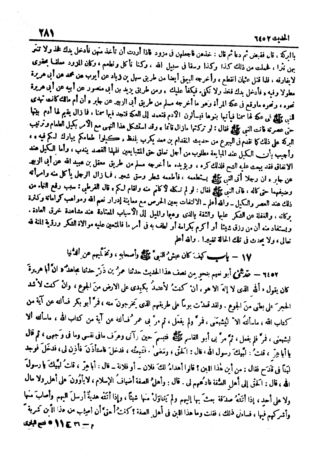 بِالْبَرَكَةِ قَالَ فَقَبَضَ ثُمَّ دَعَا ثُمَّ قَالَ خُذْهُنَّ فَاجْعَلْهُنَّ فِي مِزْوَدٍ فَإِذَا أَرَدْتَ أَنْ تَأْخُذَ مِنْهُنَّ فَأَدْخِلْ يَدَكَ فَخُذْ وَلَا تَنْثُرْ بِهِنَّ نَثْرًا فَحَمَلْتُ مِنْ ذَلِكَ كَذَا وَكَذَا وَسْقًا فِي سَبِيلِ اللَّهِ وَكُنَّا نَأْكُلُ وَنُطْعِمُ وَكَانَ الْمِزْوَدُ مُعَلَّقًا بِحَقْوِي لَا يُفَارِقُهُ فَلَمَّا قُتِلَ عُثْمَانُ انْقَطَعَ وَأَخْرَجَهُ الْبَيْهَقِيُّ أَيْضًا مِنْ طَرِيقِ سَهْلِ بْنِ زِيَادٍ عَنْ أَيُّوبَ عَنْ مُحَمَّدٍ عَنْ أَبِي هُرَيْرَةَ مُطَوَّلًا وَفِيهِ فَأَدْخِلْ يدك فَخذ وَلَا تكفيء فَيُكْفَأَ عَلَيْكَ وَمِنْ طَرِيقِ يَزِيدَ بْنِ أَبِي مَنْصُورٍ عَنْ أَبِيهِ عَنْ أَبِي هُرَيْرَةَ نَحْوَهُ وَنَحْوَهُ مَا وَقَعَ فِي عُكَّةِ الْمَرْأَةِ وَهُوَ مَا أَخْرَجَهُ مُسْلِمٌ مِنْ طَرِيقِ أَبِي الزُّبَيْرِ عَنْ جَابِرٍ أَنَّ أُمَّ مَالِكٍ كَانَتْ تُهْدِي لِلنَّبِيِّ صَلَّى اللَّهُ عَلَيْهِ وَسَلَّمَ فِي عُكَّةٍ لَهَا سَمْنًا فَيَأْتِيهَا بَنُوهَا فَيَسْأَلُونَ الْأُدْمَ فَتَعْمَدُ إِلَى الْعُكَّةِ فَتَجِدُ فِيهَا سَمْنًا فَمَا زَالَ يُقِيمُ لَهَا أُدْمَ بَيْتِهَا حَتَّى عَصَرَتْهُ فَأَتَتِ النَّبِيَّ صَلَّى اللَّهُ عَلَيْهِ وَسَلَّمَ فَقَالَ لَوْ تَرَكْتِهَا مَا زَالَ قَائِمًا وَقَدِ اسْتَشْكَلَ هَذَا النَّهْيُ مَعَ الْأَمْرِ بِكَيْلِ الطَّعَامِ وَتَرْتِيبِ الْبَرَكَةِ عَلَى ذَلِكَ كَمَا تَقَدَّمَ فِي الْبُيُوعِ مِنْ حَدِيث الْمِقْدَام بن معد يكرب بِلَفْظِ كِيلُوا طَعَامَكُمْ يُبَارَكْ لَكُمْ فِيهِ وَأُجِيبَ بِأَنَّ الْكَيْلَ عِنْدَ الْمُبَايَعَةِ مَطْلُوبٌ مِنْ أَجْلِ تَعَلُّقِ حَقِّ الْمُتَبَايِعَيْنِ فَلِهَذَا الْقَصْدِ يُنْدَبُ وَأَمَّا الْكَيْلُ عِنْدَ الْإِنْفَاقِ فَقَدْ يَبْعَثُ عَلَيْهِ الشُّحُّ فَلِذَلِكَ كُرِهَ وَيُؤَيِّدُهُ مَا أَخْرَجَهُ مُسْلِمٌ مِنْ طَرِيقِ مَعْقِلِ بْنِ عُبَيْدِ اللَّهِ عَنْ أَبِي الزُّبَيْرِ عَنْ جَابِرٍ أَنَّ رَجُلًا أَتَى النَّبِيَّ صَلَّى اللَّهُ عَلَيْهِ وَسَلَّمَ يَسْتَطْعِمُهُ فَأَطْعَمَهُ شَطْرَ وَسْقِ شَعِيرٍ فَمَا زَالَ الرَّجُلُ يَأْكُلُ مِنْهُ وَامْرَأَتُهُ وَضَيْفُهُمَا حَتَّى كَالَهُ فَأَتَى النَّبِيَّ صَلَّى اللَّهُ عَلَيْهِ وَسَلَّمَ فَقَالَ لَوْ لَمْ تَكِلْهُ لَأَكَلْتُمْ مِنْهُ وَلَقَامَ لَكُمْ قَالَ الْقُرْطُبِيُّ سَبَبُ رَفْعِ النَّمَاءِ مِنْ ذَلِكَ عِنْدَ الْعَصْرِ وَالْكَيْلِ وَاللَّهُ أَعْلَمُ الِالْتِفَاتُ بِعَيْنِ الْحِرْصِ مَعَ مُعَايَنَةِ إِدْرَارِ نِعَمِ اللَّهِ وَمَوَاهِبِ كَرَامَاتِهِ وَكَثْرَةِ بَرَكَاتِهِ وَالْغَفْلَةُ عَنِ الشُّكْرِ عَلَيْهَا وَالثِّقَةُ بِالَّذِي وَهَبَهَا وَالْمَيْلُ إِلَى الْأَسْبَابِ الْمُعْتَادَةِ عِنْدَ مُشَاهَدَةِ خَرْقِ الْعَادَةِ وَيُسْتَفَادُ مِنْهُ أَنَّ مَنْ رُزِقَ شَيْئًا أَوْ أُكْرِمَ بِكَرَامَةٍ أَوْ لُطِفَ بِهِ فِي أَمْرٍ مَا فَالْمُتَعَيِّنُ عَلَيْهِ مُوَالَاةُ الشُّكْرِ وَرُؤْيَةُ الْمِنَّةِ لِلَّهِ تَعَالَى وَلَا يُحْدِثُ فِي تِلْكَ الْحَالة تغييرا وَالله اعْلَم