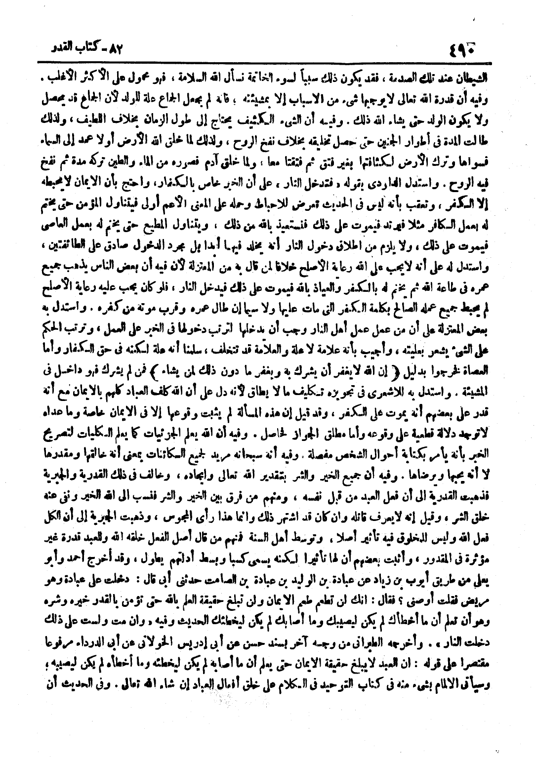 الشَّيْطَانُ عِنْدَ تِلْكَ الصَّدْمَةِ فَقَدْ يَكُونُ ذَلِكَ سَبَبًا لِسُوءِ الْخَاتِمَةِ نَسْأَلُ اللَّهَ السَّلَامَةَ فَهُوَ مَحْمُولٌ عَلَى الْأَكْثَرِ الْأَغْلَبِ وَفِيهِ أَنَّ قُدْرَةَ اللَّهِ تَعَالَى لَا يُوجِبُهَا شَيْءٌ مِنَ الْأَسْبَابِ إِلَّا بِمَشِيئَتِهِ فَإِنَّهُ لَمْ يَجْعَلِ الْجِمَاعَ عِلَّةً لِلْوَلَدِ لِأَنَّ الْجِمَاعَ قَدْ يَحْصُلُ وَلَا يَكُونُ الْوَلَدُ حَتَّى يَشَاءَ اللَّهُ ذَلِكَ وَفِيهِ أَنَّ الشَّيْءَ الْكَثِيفَ يَحْتَاجُ إِلَى طُولِ الزَّمَانِ بِخِلَافِ اللَّطِيفِ وَلِذَلِكَ طَالَتِ الْمُدَّةُ فِي أَطْوَارِ الْجَنِينِ حَتَّى حَصَلَ تَخْلِيقُهُ بِخِلَافِ نَفْخِ الرُّوحِ وَلِذَلِكَ لَمَّا خَلَقَ اللَّهُ الْأَرْضَ أَوَّلًا عَمَدَ إِلَى السَّمَاءِ فَسَوَّاهَا وَتَرَكَ الْأَرْضَ لِكَثَافَتِهَا بِغَيْرِ فَتْقٍ ثُمَّ فُتِقَتَا مَعًا وَلَمَّا خَلَقَ آدَمَ فَصَوَّرَهُ مِنَ الْمَاءِ وَالطِّينِ تَرَكَهُ مُدَّةً ثُمَّ نَفَخَ فِيهِ الرُّوحَ وَاسْتَدَلَّ الدَّاوُدِيُّ بِقَوْلِهِ فَتَدْخُلُ النَّارَ عَلَى أَنَّ الْخَبَرَ خَاصٌّ بِالْكُفَّارِ وَاحْتَجَّ بِأَنَّ الْإِيمَانَ لَا يُحْبِطُهُ إِلَّا الْكُفْرُ وَتُعُقِّبَ بِأَنَّهُ لَيْسَ فِي الْحَدِيثِ تَعَرُّضٌ لِلْإِحْبَاطِ وَحَمْلُهُ عَلَى الْمَعْنَى الْأَعَمِّ أَوْلَى فَيَتَنَاوَلُ الْمُؤْمِنَ حَتَّى يُخْتَمَ لَهُ بِعَمَلِ الْكَافِرِ مَثَلًا فَيَرْتَدُّ فَيَمُوتُ عَلَى ذَلِك فنستعيذ بِاللَّهِ مِنْ ذَلِكَ وَيَتَنَاوَلُ الْمُطِيعَ حَتَّى يُخْتَمَ لَهُ بِعَمَلِ الْعَاصِي فَيَمُوتُ عَلَى ذَلِكَ وَلَا يَلْزَمُ مِنْ إِطْلَاقِ دُخُولِ النَّارِ أَنَّهُ يُخَلَّدُ فِيهَا أَبَدًا بَلْ مُجَرَّدُ الدُّخُولِ صَادِقٌ عَلَى الطَّائِفَتَيْنِ وَاسْتُدِلَّ لَهُ عَلَى أَنَّهُ لَا يَجِبُ عَلَى اللَّهِ رِعَايَةَ الْأَصْلَحِ خِلَافًا لِمَنْ قَالَ بِهِ مِنَ الْمُعْتَزِلَةِ لِأَنَّ فِيهِ أَنَّ بَعْضَ النَّاسِ يَذْهَبُ جَمِيعُ عُمُرِهِ فِي طَاعَةِ اللَّهِ ثُمَّ يُخْتَمُ لَهُ بِالْكُفْرِ وَالْعِيَاذُ بِاللَّهِ فَيَمُوتُ عَلَى ذَلِكَ فَيَدْخُلُ النَّارَ فَلَوْ كَانَ يَجِبُ عَلَيْهِ رِعَايَةَ الْأَصْلَحِ لَمْ يَحْبَطْ جَمِيعُ عَمَلِهِ الصَّالِحِ بِكَلِمَةِ الْكُفْرِ الَّتِي مَاتَ عَلَيْهَا وَلَا سِيَّمَا إِنْ طَالَ عُمُرُهُ وَقَرُبَ مَوْتُهُ مِنْ كُفْرِهِ وَاسْتَدَلَّ بِهِ بَعْضُ الْمُعْتَزِلَةِ عَلَى أَنَّ مَنْ عَمِلَ عَمَلَ أَهْلِ النَّارِ وَجَبَ أَنْ يَدْخُلَهَا لِتَرَتُّبِ دُخُولِهَا فِي الْخَبَرِ عَلَى الْعَمَلِ وَتَرَتُّبُ الْحُكْمِ عَلَى الشَّيْءِ يُشْعِرُ بِعِلِّيَّتِهِ وَأُجِيبَ بِأَنَّهُ عَلَامَةٌ لَا عِلَّةٌ وَالْعَلَامَةُ قَدْ تَتَخَلَّفُ سَلَّمْنَا أَنَّهُ عِلَّةٌ لَكِنَّهُ فِي حَقِّ الْكُفَّارِ وَأَمَّا الْعُصَاةُ فَخَرَجُوا بِدَلِيلِ إِنَّ اللَّهَ لَا يَغْفِرُ أَنْ يُشْرَكَ بِهِ وَيَغْفِرُ مَا دُونَ ذَلِك لمن يَشَاء فَمَنْ لَمْ يُشْرِكْ فَهُوَ دَاخِلٌ فِي الْمَشِيئَةِ وَاسْتدلَّ بِهِ الْأَشْعَرِيّ فِي تجويزه تَكْلِيف مَالا يُطَاقُ لِأَنَّهُ دَلَّ عَلَى أَنَّ اللَّهَ كَلَّفَ الْعِبَادَ كُلَّهُمْ بِالْإِيمَانِ مَعَ أَنَّهُ قَدَّرَ عَلَى بَعْضِهِمْ أَنَّهُ يَمُوتُ عَلَى الْكُفْرِ وَقَدْ قِيلَ إِنَّ هَذِهِ الْمَسْأَلَةَ لَمْ يَثْبُتْ وُقُوعُهَا إِلَّا فِي الْإِيمَانِ خَاصَّةً وَمَا عَدَاهُ لَا تُوجَدُ دَلَالَةٌ قَطْعِيَّةٌ عَلَى وُقُوعِهِ وَأَمَّا مُطْلَقُ الْجَوَازِ فَحَاصِلٌ وَفِيهِ أَنَّ اللَّهَ يَعْلَمُ الْجُزْئِيَّاتِ كَمَا يَعْلَمُ الْكُلِّيَّاتِ لِتَصْرِيحِ الْخَبَرِ بِأَنَّهُ يَأْمُرُ بِكِتَابَةِ أَحْوَالِ الشَّخْصِ مُفَصَّلَةً وَفِيهِ أَنَّهُ سُبْحَانَهُ مَرِيدٌ لِجَمِيعِ ال
