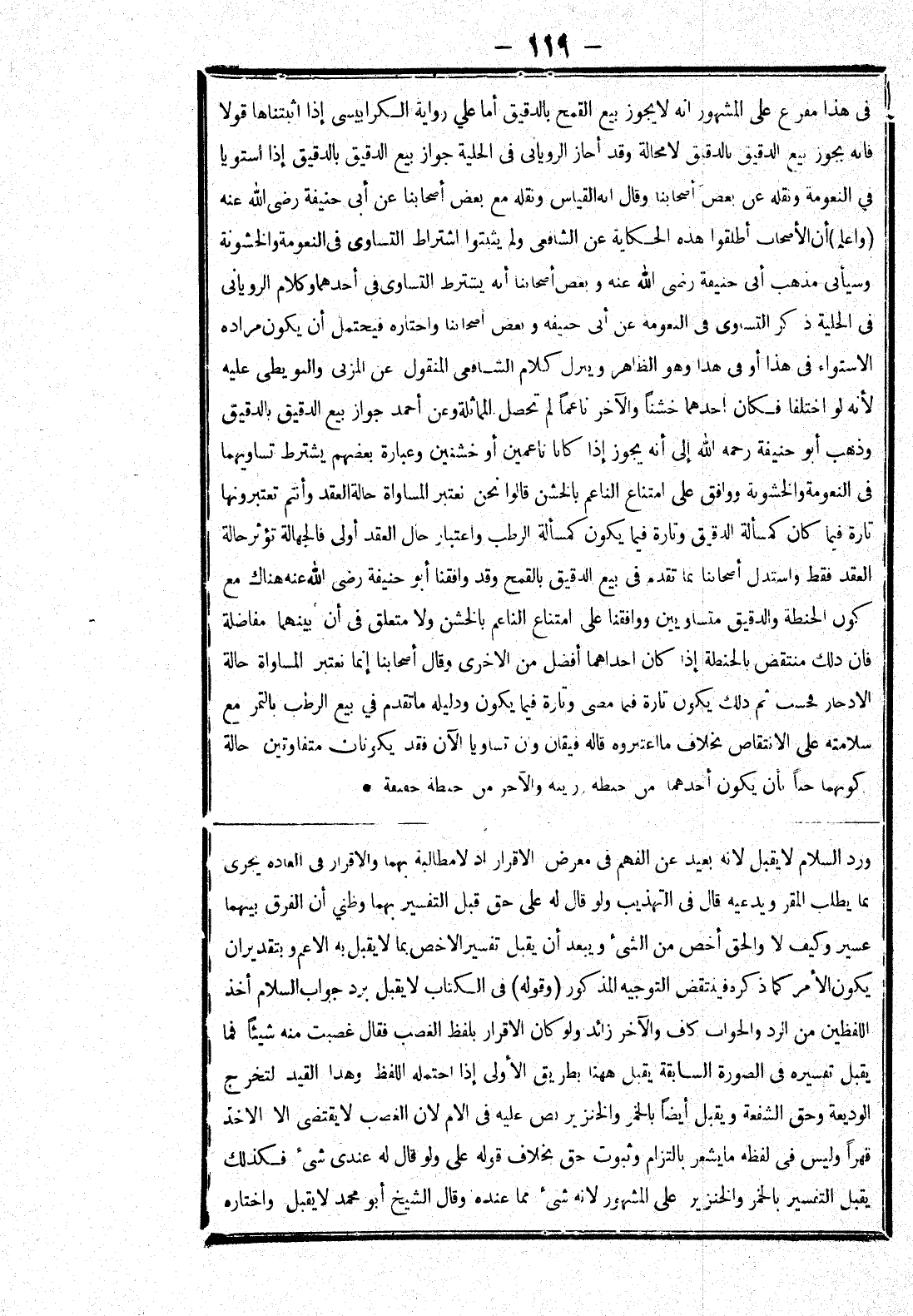 ورد السلام لا يقبل لانه بعيد عن الفهم في معرض الاقرار إذ لا مطالبة بهما والاقرار في العادة يجرى بما يطلب المقر ويدعيه قال في التهذيب ولو قال له على حق قبل التفسير بهما وظني أن الفرق بينهما عسير وكيف لا والحق أخص من الشئ ويبعد أن يقبل تفسير الاخص بما لا يقبل به الاعم وبتقدير ان يكون الامر كما ذكره فينتقض التوجيه المذكور (وقوله) في الكتاب لا يقبل برد جواب السلام أخذ اللفظين من الرد والجواب كاف والآخر زائد ولو كان الاقرار بلفظ الغصب فقال غصبت منه شيئا فبما يقببل تفسيره في الصورة السابقة يقبل ههنا بطريق الاولى إذا احتمله اللفظ وهذا القيد لتخرج الوديعة وحق الشفعة ويقبل أيضا بالخمر والخنزير نص عليه في الام لان الغصب لا يقتضى الا الاخذ قهرا وليس في لفظه ما يشعر بالتزام وثبوت حق بخلاف قوله على ولو قال له عندي شئ فكذلك يقبل االتفسى بالخمر والخنزير على المشهور لانه شئ مما عنده وقال الشيخ أبو محمد لا يقبل واختاره