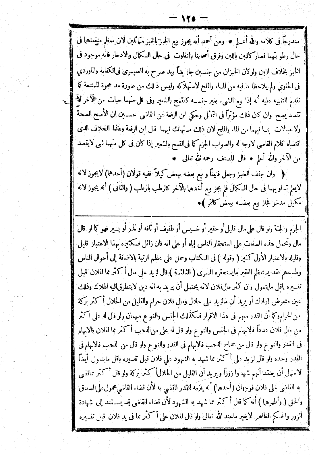 الجرم والجثة ولو قال على مال قليل أو حقير أو خسيس أو طفيف أو تافه أو نذر أو يسير فهو كما لو قال مال وتحمل هذه الصفات على استحقار الناس إياه أو على انه فان زائل فكثيره بهذا الاعتبار قليل وقليله بالاعتبار الاول كثير (وقوله) في الكتاب وحمل على عظم الرتبة بالاضافة إلى أحوال الناس وطباعهم فقد يستعظم الفقير ما يستحقره السرى (الثالثة) قال لزيد على مال أكثر مما لفلان قبل تفسيره باقل ما يتمول وان كثر مال فلان لانه يحتمل أن يريد به انه دين لا يتطرق إليه الهلاك وذلك عين متعرض الهلاك أو يريد أن ما لزيد على حلال ومال فلان حرام والقليل من الحلال أكثر بركة من الحرام وكما أن القدر مبهم في هذا الاقرار فكذلك الجنس والنوع مبهمان ولو قال له على اكثر