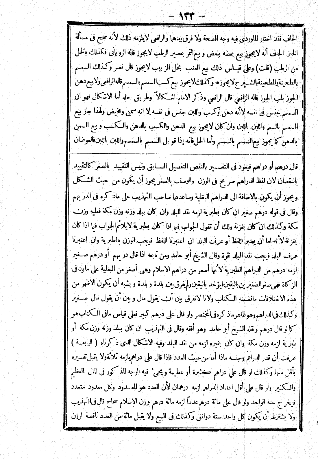 وكذلك في الدراهم وهو ظاهر ما ذكره في المختصر وولو قال على درهم كبير فعلى قياس مافى الكتاب هو كما لو قال درهم ونقله الشيخ أبو حامد وهو أفقه وقال في التهذيب ان كان ببلد وزنه وزن مكة أو طبرية لزمه وزن مكة وان كان بغيره لزمه من نقد البلد وفيه الاشكال الذى ذكرناه (الرابعة) عرفت أن قدر الدراهم وجنسه ماذا أما من حيث العدد فإذا قال على دراهم يلزمه ثلاثة ولا يقبل تفسيره بأقل منها وكذلك لو قال على دراهم كثيرة أو عظيمة ويجئ فيه الوجه المذكور في المال العظيم والكثير ولو قال على أقل اعداد الدراهم لزمه درهمان لان العدد هو المعدود وكل معدود متعدد فيخرج عنه الواحد ولو قال على مائة درهم عددا لزمه مائة درهم بوزن الاسلام صحاح قال في التهذيب ولا يشترط أن يكون كل واحد ستة دوانق وكذلك في البيع ولا يقبل مائة من العدد ناقصة الوزن