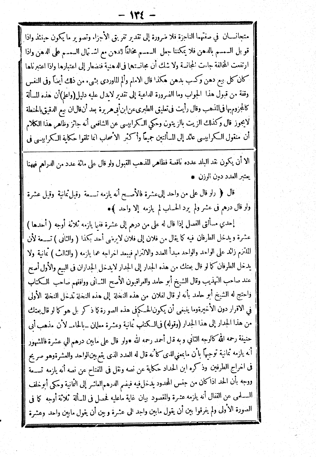 إحدى مسألتي الفصل إذا قال له على من درهم إلى عشرة ففيما يلزمه ثلاثة أوجه (أحدها) عشرة ويدخل الطرفان فيه كما يقال من فلان إلى فلان لا يرضى أحد بكذا (والثانى) تسعة لان الملتزم زائد على الواحد والواحد مبدأ العدد والالتزام فيبعد اخراجه عما يلزمه (والثالث) ثمانية ولا يدخل الطرفان كما لو قال بعتك من هذه الجدار إلى الجدار لايدخل الجداران في البيع والاول أصح عند صاحب التهذيب وقال الشيخ أبو حامد والعراقيون الاصح الثاني ووافقهم صاحب الكتاب واحتج له الشيخ أبو حامد بأنه لو قال لفلان من هذه النخلة إلى هذه النخلة تدخل النخلة الاولى في الاقرار دون الاخيرة وما ينبغى أن يكون الحكم في هذه الصورة كما ذكر بل هو كما لو قال بعتك من هذا الجدار إلى هذا الجدار (وقوله) في الكتاب ثمانية وعشرة معلمان - بالحاء - لان مذهب أبى حنيفة رحمه الله كالوجه الثاني وبه قال أحمد رحمه الله.