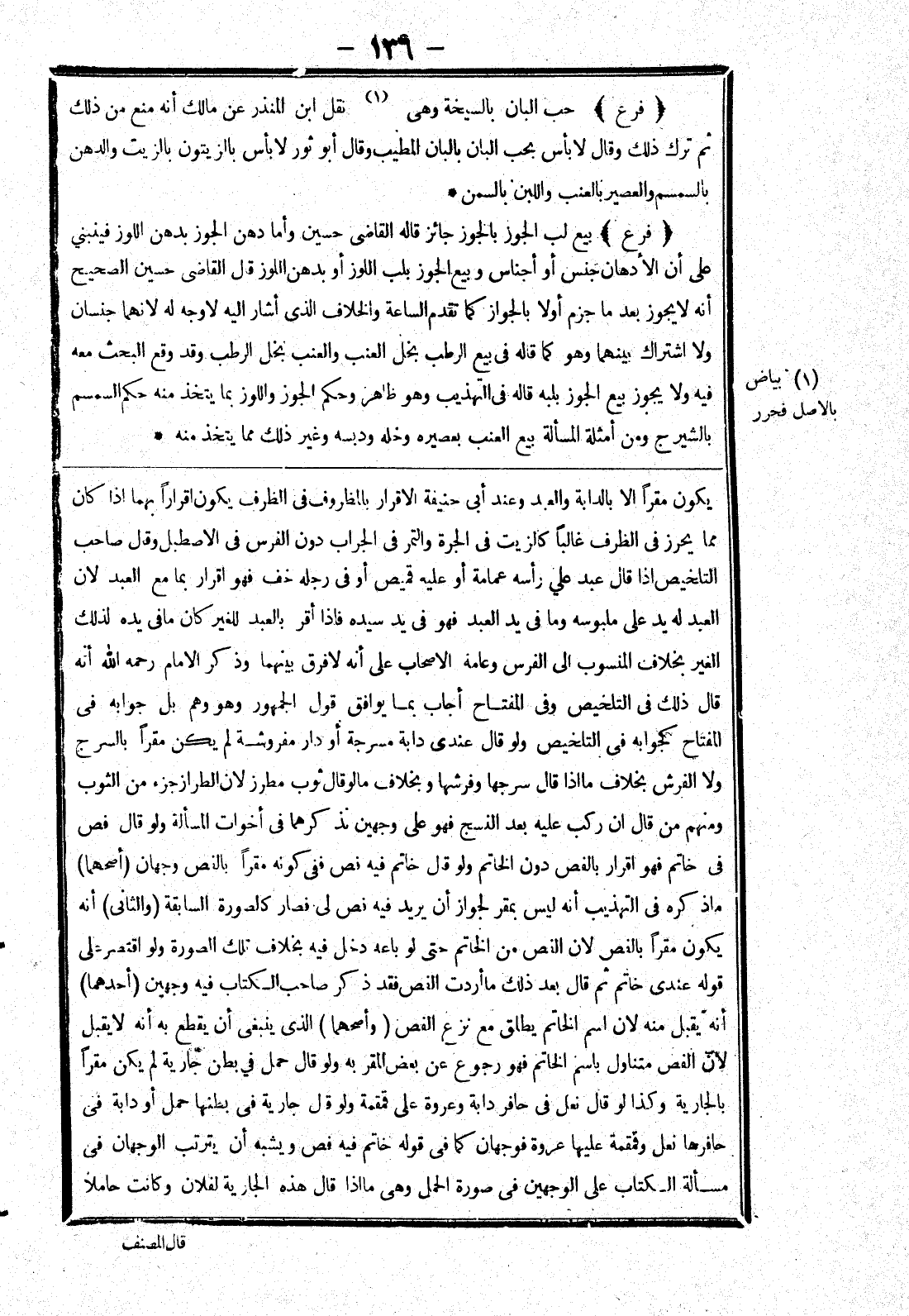 يكون مقرا الا بالدابة والعبد وعند أبى حنيفة الاقرار بالمظروف في الظرف يكون اقرارا بهما إذا كان مما يحرز في الظرف غالبا كالزيت في الجرة والتمر في الجراب دون الفرس في الاصطبل وقل صاحب التلخيص إذا قال عبد على رأسه عمامة أو عليه قميص أو في رجله خف فهو اقرار بما مع العبد لان العبد له يد على ملبوسه وما في يد العبد فهو في يد سيده فإذا أقر بالعبد للغير كان مافى يده لذلك الغير بخلاف المنسوب إلى الفرس وعامة الاصحاب على أنه لافرق بينهما وذكر الامام رحمه الله أنه قال ذلك في التخليص وفى المفتاح أجاب بما يوافق قول الجمهور وهو وهم بل جوابه في المفتاح كجوابه في التلخيص ولو قال عندي دابة مسرجة أو دار مفروشة لم يكن مقرا بالسرج ولا الفرش بخلاف ما إذا قال سرجها وفرشها وبخلاف ما لو قال ثوب مطرز لان الطراز جزء من الثوب ومنهم من قال ان ركب عليه بعد النسج فهو على وجهين نذكرهما في أخوات المسألة ولو قال فص في خاتم فهو اقرار بالفص دون الخاتم ولو قال خاتم فيه فص ففى كونه مقرا بالفص وجهان (أصحهما) ما ذكره في التهذيب أنه ليس بمقر لجواز أن يريد فيه فص لى فصار كالصورة السابقة (والثانى) أنه يكون مقرا بالفص لان الفص من الخاتم حتى لو باعه دخل فيه بخلاف تلك الصورة ولو اقتصر على قوله عندي خاتم ثم قال بعد ذلك ما أردت الفص فد ذكر صاحب الكتاب فيه وجهين (أحدهما) أنه يقبل منه لان اسم الخاتم يطلق مع نزع الفص (وأصحهما) الذى ينبغى أن يقطع به أنه لا يقبل لان الفص متناول باسم الخاتم فهو رجوع عن بعض المقر به ولو قال حمل في بطن جارية لم يكن مقرا بالجارية وكذا لو قال نعل في حافر دابة وعروة على قمقمة ولو قال جارية في بطنها حمل أو دابة في حافرها نعل وقمقمة عليها عروة فوجهان كما في قوله خاتم فيه فص ويشبه أن يترتب الوجهان في مسألة الكتاب على الوجهين في صورة الحمل وهى ماذا قال هذه الجارية لفلان وكانت حاملا
