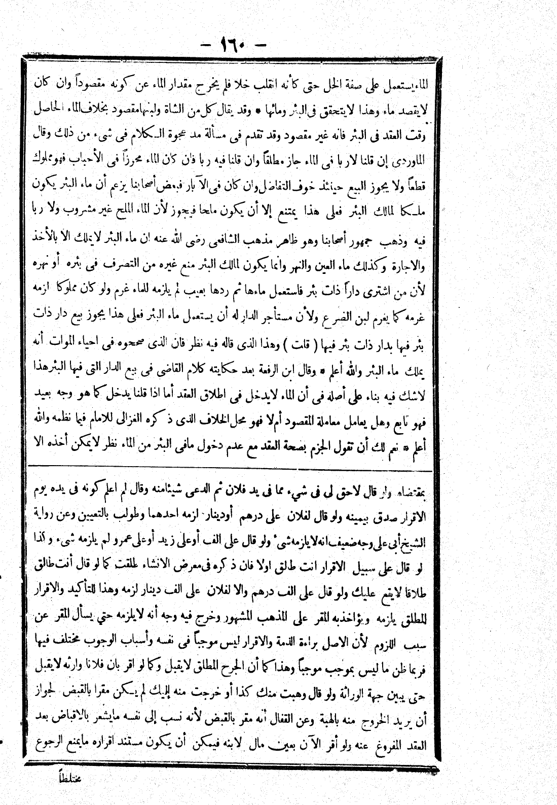 بمقتضاه ولو قال لاحق لى في شئ مما في يد فلان ثم الدعى شيئا منه وقال لم اعلم كونه في يده يوم الاقرار صدق بيمينه ولو قال لفلان على درهم أو دينار لزمه احدهما وطولب بالتعيين وعن رواية الشيخ أبى على وجه ضعيف انه لا يلزمه شئ ولو قال على الف أو على زيد أو على عمر ولم يلزمه شئ وكذا لو قال على سبيل الاقرار انت طالق اولا فان ذكره في معرض الانشاء طلقت كما لو قال أنت طالق طلاقا لا يقع عليك ولو قال على الف درهم والا لفلان على الف دينار لزمه وهذا للتأكيد والاقرار المطلق يلزمه ويؤاخذ به المقر على المذهب المشهور وخرج فيه وجه أنه لا يلزمه حتى يسأل المقر عن سبب اللزوم لان الاصل براءة الذمة والاقرار ليس موجبا في نفسه وأسباب الوجوب مختلف فيها فربما ظن ما ليس بموجب موجبا وهذا كما أن الجرح المطلق لا يقبل وكما لو اقر بان فلانا وارثه لا يقبل حتى يبين جهة الوراثة ولو قال وهبت منك كذا أو خرجت منه إليك لم يكن مقرا بالقبض لجواز أن يريد الخروج منه بالهبة وعن القفال أنه مقر بالقبض لانه نسب إلى نفسه ما يشعر بالاقباض بعد العقد المفروغ عنه ولو أقر الآن بعين مال لابنه فيمكن أن يكون مستند اقراره ما يمنع الرجوع