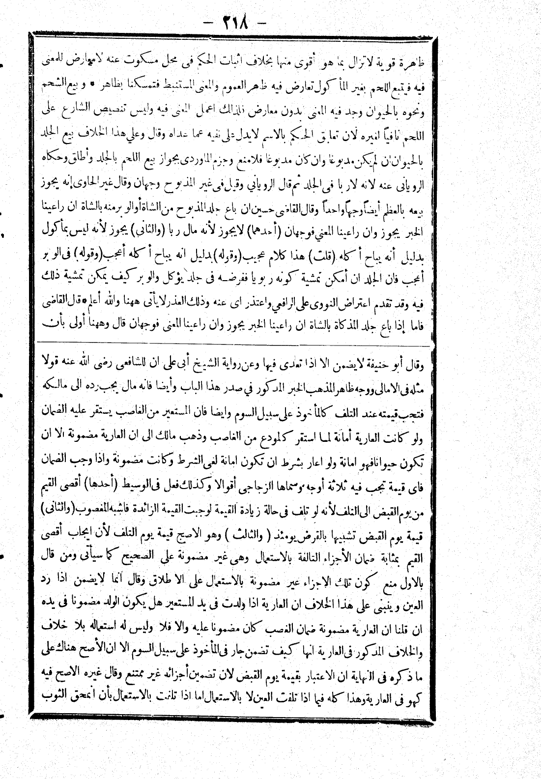 وقال أبو حنيفة لا يضمن الا إذا تعدى فيها وعن رواية الشيخ أبى على ان للشافعي رضى الله عنه قولا مثله في الامالى ووجه ظاهر المذهب الخبر المذكور في صدر هذا الباب وأيضا فانه مال يجب رده إلى مالكه فتجب قيمته عند التلف كالمأخوذ على سبيل السوم وايضا فان المستعير من الغاصب يستقر عليه الضمان ولو كانت العارية أمانة لما استقر كالمودع من الغاصب وذهب مالك إلى ان العارية مضمونة الا ان تكون حيوانا فهو امانة ولو اعار بشرط ان تكون امانة لغى الشرط وكانت مضمونة وإذا وجب الضمان فاى قيمة تجب فيه ثلاثة أوجه وسماها الزجاجي أقوالا وكذلك فعل الوسيط (أحدها) أقصى القيم من يوم القبض إلى التلف لانه لو تلف في حالة زيادة القيمة لوجبت القيمة الزائدة فاشبه المغصوب (والثانى) قيمة يوم القبض تشبيها بالقرض يومئذ (والثالث) وهو الاصح قيمة يوم التلف لان ايجاب أقصى القيم بمثابة ضمان الاجزاء التالفة بالاستعمال وهي غير مضمونة على الصحيح كما سيأتي ومن قال بالاول منع كون تلك الاجزاء غير مضمونة بالاستعمال على الاطلاق وقال انما لا يضمن إذا رد العين وينبنى على هذا الخلاف ان العارية إذا ولدت في يد المستعير هل يكون الولد مضمونا في يده ان قلنا ان العارية مضمونة ضمان الغصب كان مضمونا عليه والا فلا وليس له استعماله بلا خلاف والخلاف المذكور في العارية انها كيف تضمن جار في المأخوذ على سبيل السوم الا ان الاصح هناك على ما ذكره في النهاية ان الاعتبار بقيمة يوم القبض لان تضمين أجزائه غير ممتنع وقال غيره الاصح فيه كهو في العارية وهذا كله فيما إذا تلفت العين لا بالاستعمال اما إذا تلفت بالاستعمال بأن انمحق الثوب