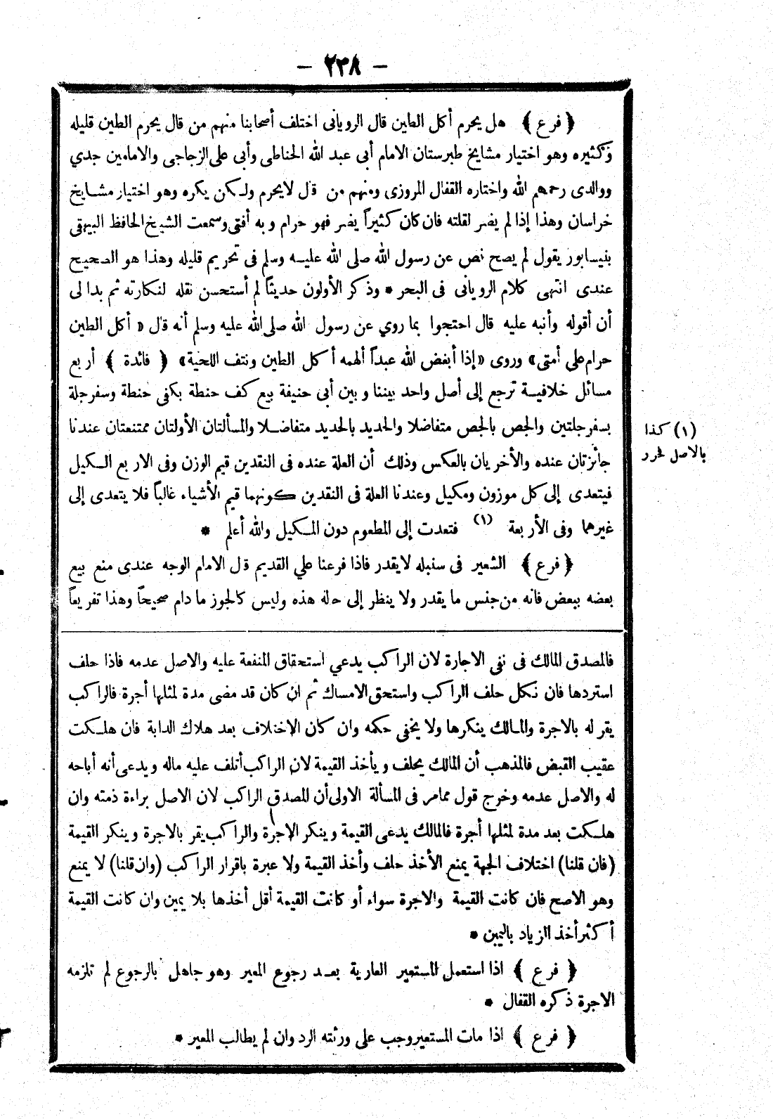 (فرع) إذا استعمل المستعير العارية بعد رجوع المعير وهو جاهل بالرجوع لم تلزمه الاجرة ذكره القفال.
