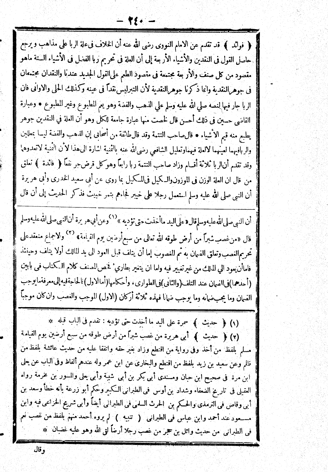 أن النبي صلى الله عليه وسلم قال (على اليد ما أخذت حتى تؤديه) وعن أبى هريرة أن النبي صلى الله عليه وسلم قال ((من غصب شبرا من أرض طوقه الله تعالى من سبع أرضين يوم القيامة) والاجماع منعقد على تحريم الغصب وتعلق الضمان به ثم المغصوب إما أن يتلف قبل العود إلى يد المالك أولا يتلف وحينئذ فاما أن يعود إلى المالك من غير تغيير فيه واما ان يتغير بطارئ فخص المصنف كلام الكتاب في بابين (أحدهما) في الضمان عند التلف (والثانى) في الطوارئ وأحكمهما (أما الأول) فالحاجة فيه إلى معرفة ما يوجب الضمان وما يجب ضمانة وما يوجب ضمانا فهذه ثلاثة أركان (الاول) الموجب والغصب وان كان موجبا