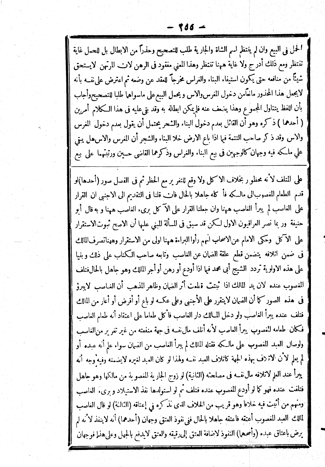 المغصوب عنده لان يد المالك إذا ثبتت قطعت أثر الضمان وظاهر المذهب أن الغاصب لا يبرؤ في هذه الصور كما أن الضمان لا يتقرر على الأجنبي وعلى عكسه لو باع أو أقرض أو أعار من المالك فتلف عنده يبرأ الغاصب ولو دخل المالك دار الغاصب فأكل طعاما على اعتقاد أنه طعام الغاصب فكان طعامه المغصوب يبرأ الغاصب لانه أتلف مال نفسه في جهة منفعته من غير تغرير من الغاصب ولو صال العبد المغصوب على مالكه فقتله المالك لم يبرأ الغاصب من الضمان سواء علم أنه عبده أو لم يعلم لان الاتلاف بهذه الجهة كاتلاف العبد نفسه ولهذا لو كان العبد لغيره لا يضمنه وفيه وجه أنه يبرأ عند العلم لاتلافه مال نفسه في مصلحته (الثانية) لو زوج الجارية المغصوبة من مالكها وهو جاهل فتلفت عنده فهو كما لو أودع المغصوب عنده فتلف ثم لو استولدها نفذ الاستيلاد وبرئ الغاصب ومنهم من أثبت فيه خلافا وهو قريب من الخلاف الذى نذكره في إعتاقه (الثالثة) لو قال الغاصب لمالك العبد المغصوب أعتقه فاعتقه جاهلا بالحال ففى نفوذ العتق وجهان (أحدهما) أنه لا ينفذ لانه لم يرض باعتاق عبده (وأصحهما) النفوذ لاضافة العتقد إلى رقيقه والعتق لا يدفع بالجهل وعلى هذا فوجهان