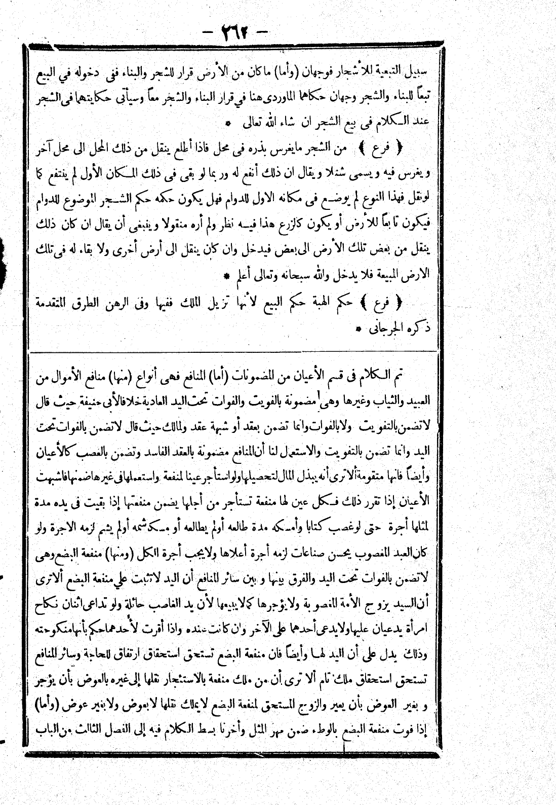 تم الكلام في قسم الاعيان من المضمونات (أما) المنافع فهى أنواع (منها) منافع الاموال من العبيد والثياب وغيرها وهى مضمونة بالتفويت والفوات تحت اليد العادية خلافا لابي حنيفة حيث قال لا تضمن بالتفويت ولا بالفوات وانما تضمن بعقد أو شبهة عقد ولمالك حيث قال لا تضمن بالفوات تحت اليد وانما تضمن بالتفويت والاستعمال لنا أن المنافع مضمونة بالعقد الفاسد وتضمن بالغصب كالاعيان وأيضا فانها متقومة ألا ترى أنه يبذل المال لتحصيلها ولو استأجر عينا لمنفعة واستعملها في غيرها ضمنها فاشتبهت الاعيان إذا تقرر ذلك فكل عين لها منفعة تستأجر من أجلها يضمن منفعتها إذا بقيت في يده مدة لمثلها أجرة حتى لو غصب كتابا وأمسكه مدة طالعه أو لم يطالعه أو مسكا شمه أو لم يشم لزمه الاجرة ولو كان العبد المغصوب يحسن صناعات لزمه أجرة أعلاها ولا يجب أجرة الكل (ومنها) منفعة البضع وهى لا تضمن بالفوات تحت اليد والفرق بينها وبين سائر المنافع أن اليد لا تثبت على منفعة البضع الا ترى أن السيد يزوج الامة المغصوبة ولا يؤجرها كما لا يبيعها لان يد الغاصب حائلة ولو تداعى اثنان نكاح