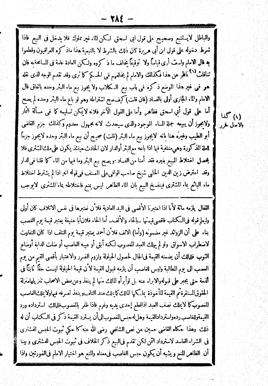 القفال يلزمه مائة لانا إذا اعتبرنا الاقصى في اليد العادية فلان نعتبرها في نفس الاتلاف كان أولى وليعلم قوله في الكتاب فاقصى قيمتها - بالحاء والالف - أما الحاء فلان أبا حنيفة يعتبر قيمة يوم الغصب بناء على أن الزوائد غير مضمونة (وأما) الالف فلان أحمد يعتبر قيمة يوم التلف إذا كان التفاوت لاضطراب الاسواق ولو لم يهلك العبد المغصوب لكنه أبق أو عيبه الغاصب أو ضلت الدابة أو ضاع الثوب فللمالك أن يضمنه القيمة في الحال لحصول الحيلولة ولزوم الضرر والاعتبار بأقصى القيم من يوم الغصب إلى يوم المطالبة وليس للغاصب أن يلزمه قبول القيمة لان قيمة الحيلولة ليست حقا ثابتا في الذمة حتى يجبر على قبوله والابراء عنه بل لو أبرأه المالك منها لم ينفذ وعن بعض الاصحاب تنزيلها منزلة الحقوق المستقرة ثم القيمة المأخوذة يملكها المالك كما يملك عند التلف وينفذ تصرفه فيها ولا يملك الغاصب المغصوب كما لا يملك نصف العبد إذا قطع إحدى يديه وغرم فإذا ظفر بالمغصوب فللمالك استرداده ورد القيمة وللغاصب رده واسترداد القيمة وهل له حبس المغصوب إلى أن يسترد القيمة ذكر في الكتاب أن له ذلك وهذا حكاه القاضى حسين عن نص الشافعي رضى الله عنه كما حكى ثبوت الحبس للمشتري في الشراء الفاسد لاسترداد الثمن لكن تقدم في البيع ذكر الخلاف في ثبوت الحبس للمشتري وبينا أن الظاهر المنع ويشبه أن يكون حبس الغاصب في معناه والمنع هو اختيار الامام في الصورتين وإذا