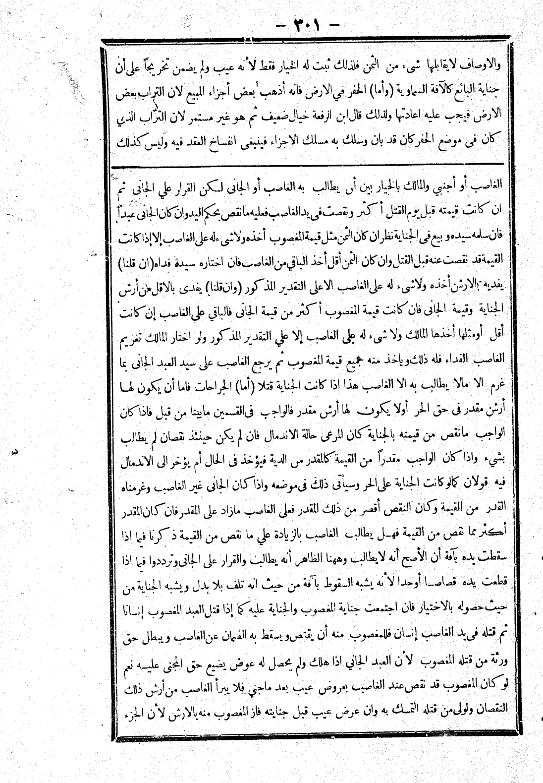 الغاصب أو أجنبي والمالك بالخيار بين أن يطالب به الغاصب أو الجاني لكن القرار على الجاني ثم ان كانت قيمته قبل يوم القتل أكثر ونقصت في يد الغاصب فعليه ما نقص بحكم اليد وان كان الجاني عبدا فان سلمه سيده وبيع في الجنايه نظران كان الثمن مثل قيمة المغصوب أخذه ولا شئ له على الغاصب إلا إذا كانت القيمة قد نقصت عنه قبل القتل وان كان الثمن أقل أخذ الباقي من الغاصب فان اختاره سيده فداه (ان قلنا)