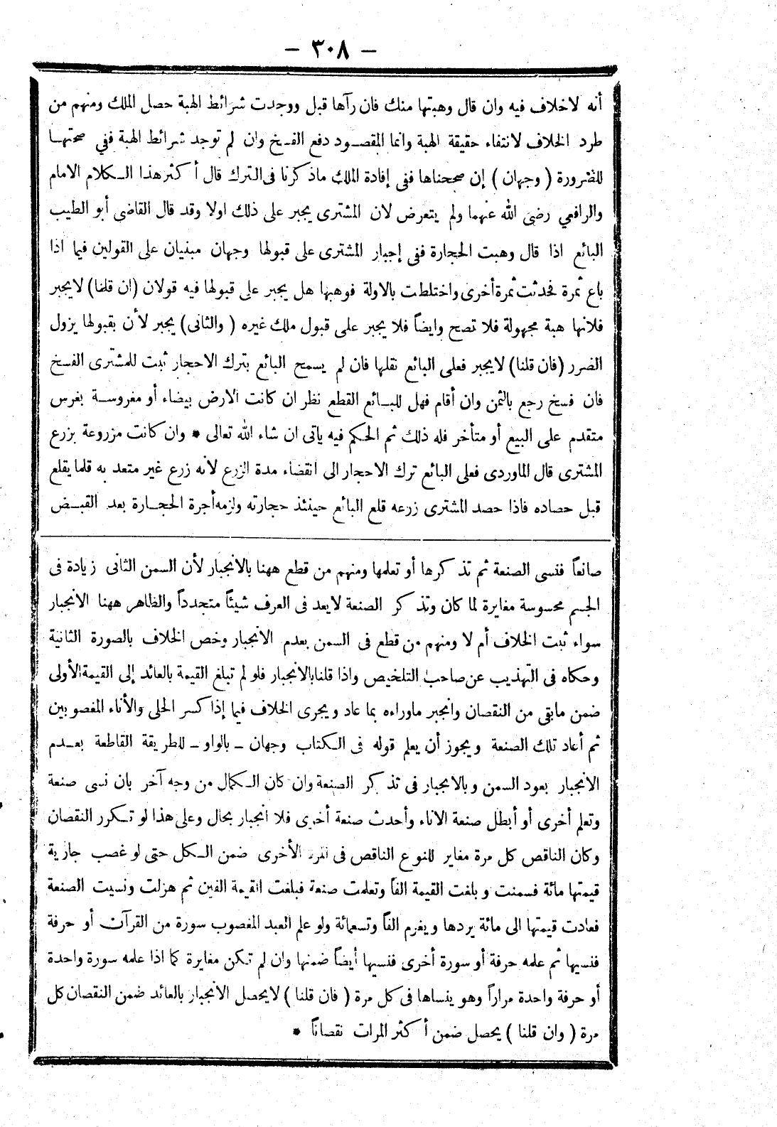 صانعا فنسى الصنعة ثم تذكرها أو تعلمها ومنهم من قطع ههنا بالانجبار لان السمن الثاني زيادة في الجسم محسوسة مغايرة لما كان وتذكر الصنعة لا يعد في العرف شيئا متجددا والظاهر ههنا الانجبار سواء ثبت الخلاف أم لا ومنهم من قطع في السمن بعدم الانجبار وخص الخلاف بالصورة الثانية وحكاه في التهذيب عن صاحب التلخيص وإذا قلنا بالانجبار فلو لم تبلق القيمة بالعائد إلى القيمة الاولى ضمن ما بقى من النقصان وانجبر ما وراءه بما عاد ويجرى الخلاف فيما إذا كسر الحلى والاناء المغصوبين ثم أعاد تلك الصنعة ويجوز أن يعلم قوله في الكتاب وجهان بالواو للطريقة القاطعة بعدم