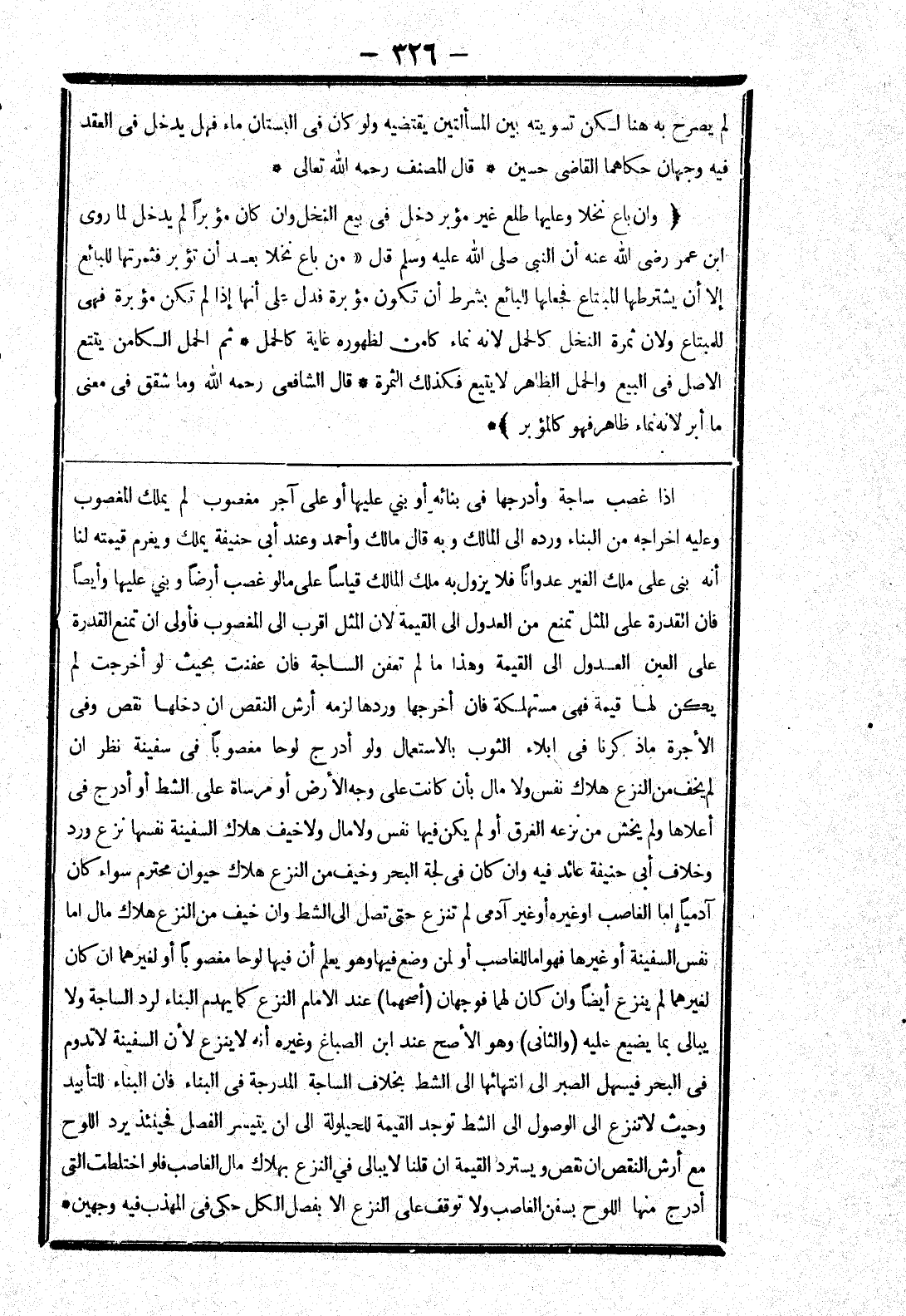 إذا غصب ساجة وأدرجها في بنائه أو بني عليها أو على آجر مغصوب لم يملك المغصوب وعليه اخراجه من البناء ورده إلى المالك وبه قال مالك وأحمد وعند أبى حنيفة يملك ويغرم قيمته لنا أنه بنى على ملك الغير عدوانا فلا يزول به ملك المالك قياسا على مالو غصب أرضا وبني عليها وأيضا فان القدرة على المثل تمنع من العدول إلى القيمة لان المثل اقرب إلى المغصوب فأولى ان تمنع القدرة على العين العدول إلى القيمة وهذا ما لم تعفن الساجة فان عفنت بحيث لو أخرجت لم يكن لها قيمة فهي مستهلكة فان أخرجها وردها لزمه أرش النقص ان دخلها نقص وفي