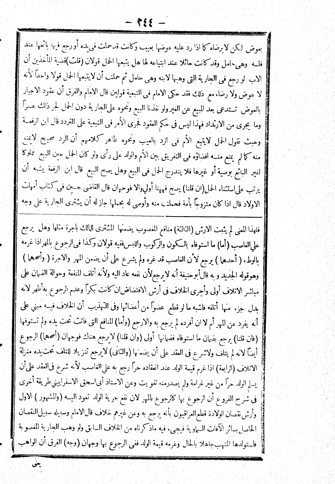 فلهذا المعنى لم يثبت الارش (الثالثة) منافع المغصوب يضمنها المشترى للمالك باجرة مثلها وهل يرجع على الغاصب (أما) ما استوفاه بالسكون والركوب واللبس ففيه قولان وكذا في الرجوع بالمهر إذا غرمه بالوطئ (أحدهما) يرجع لان الغاصب قد غره ولم يشرع على أن يضمن المهر والاجرة (وأصحهما) وهو قوله الجديد وبه قال أبو حنيفة أنه لا يرجع لان نفعه عاد إليه ولانه أتلف المنفعة وحوالة الضمان على مباشر الاتلاف أولى وأجرى الخلاف في أرش الافتضاض ان كانت بكرا وعدم الرجوع به أظهر لانه بدل جزء منها أتلفه فاشبه ما لو قطع عضوا من أعضائها وفي التهذيب أن الخلاف فيه مبني على أنه يفرد عن المهر أم لا ان أفرده لم يرجع به والا رجع (وأما) المنافع التي فاتت تحت يده ولم تستوفها (فان قلنا) يرجع بضمان ما استوفاه فضمانها أولى (وان قلنا) لا يرجع هناك فوجهان (أصحهما) الرجوع أيضا لانه لم يتلف ولاشرع في العقد على أن يضمنها (والثاني) لا يرجع تنزيلا للتلف تحت يده منزلة الاتلاف (الرابعة) إذا غرم قيمة الولد عند انعقاده حرا رجع به على الغاصب لانه شرع في العقد على أن يسلم الولد حرا من غير غرامة ولم يصدر منه تفويت وعن الاستاذ أبى اسحق الاسفراييني طريقة أخرى في شرح الفروع أن الرجوع بها كالرجوع بالمهر لان نفع حرية الولد تعويد إليه (والمشهور) الاول وأرش نقصان الولادة قطع العراقيون بأنه يرجع به وعن غيرهم خلاف قال الامام وسبيله سبيل النقصان الحاصل بسائر الآفات السماوية فيجئ فيه ما ذكرناه من الخلاف السابق ولو وهب الجارية المغصوبة فاستولدها المتهب جاهلا بالحال وغرمه قيمة الولد ففى الرجوع بها وجهان (وجه) الفرق أن الواهب
