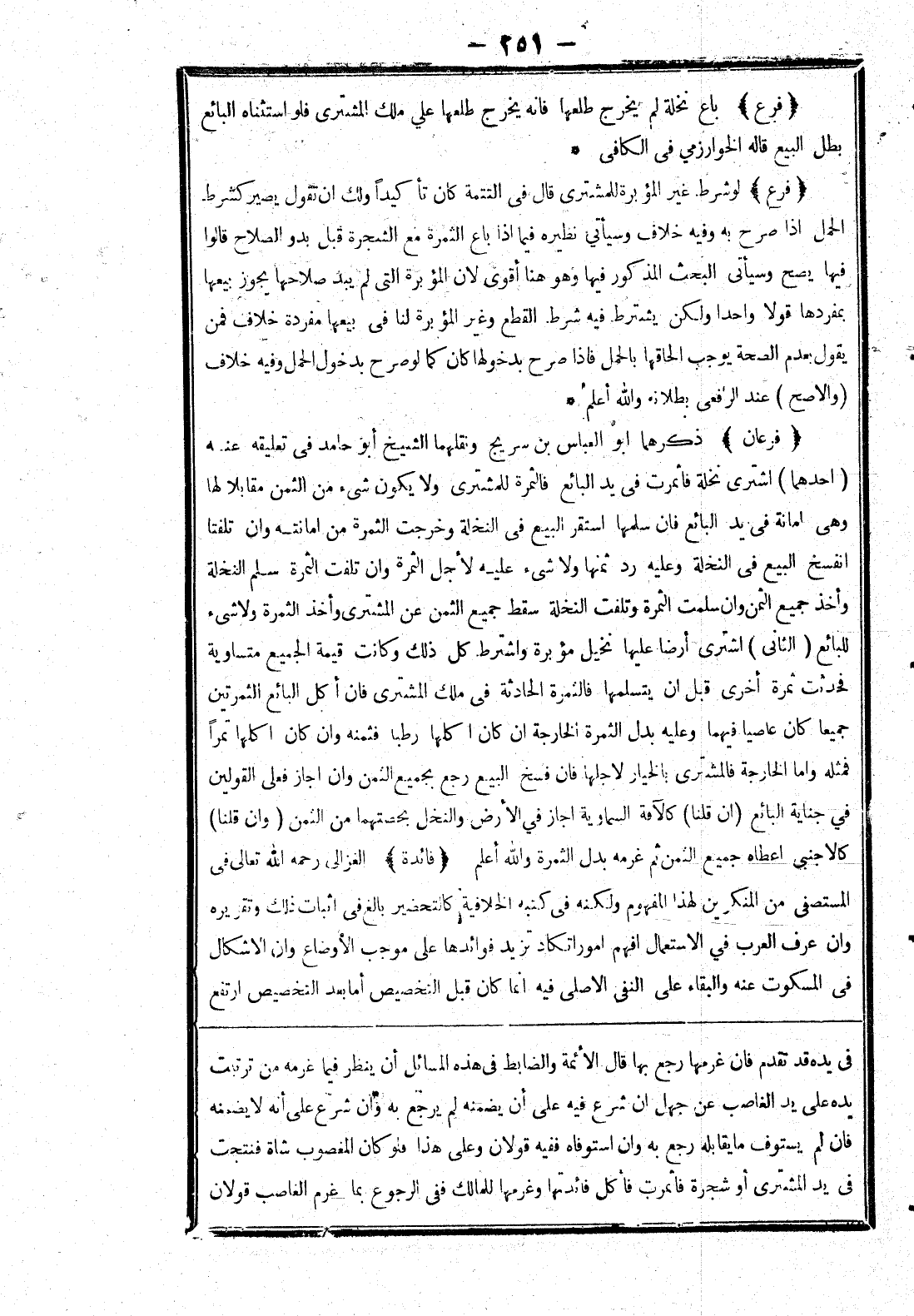 في يده قد تقدم فان غرمها رجع بها قال الائمة والضابط في هذه المسائل أن ينظر فيما غرمه من ترتيب يده على يد الغاصب عن جهل ان شرع فيه على أن يضمنه لم يرجع به وان شرع على أنه لا يضمنه فان لم يستوف ما يقابله رجع به وان استوفاه ففيه قولان وعلى هذا فلو كان المغصوب شاة فنتجت في يد المشترى أو شجرة فاثمرت فأكل فائدتها وغرمها للمالك ففي الرجوع بما غرم الغاصب قولان