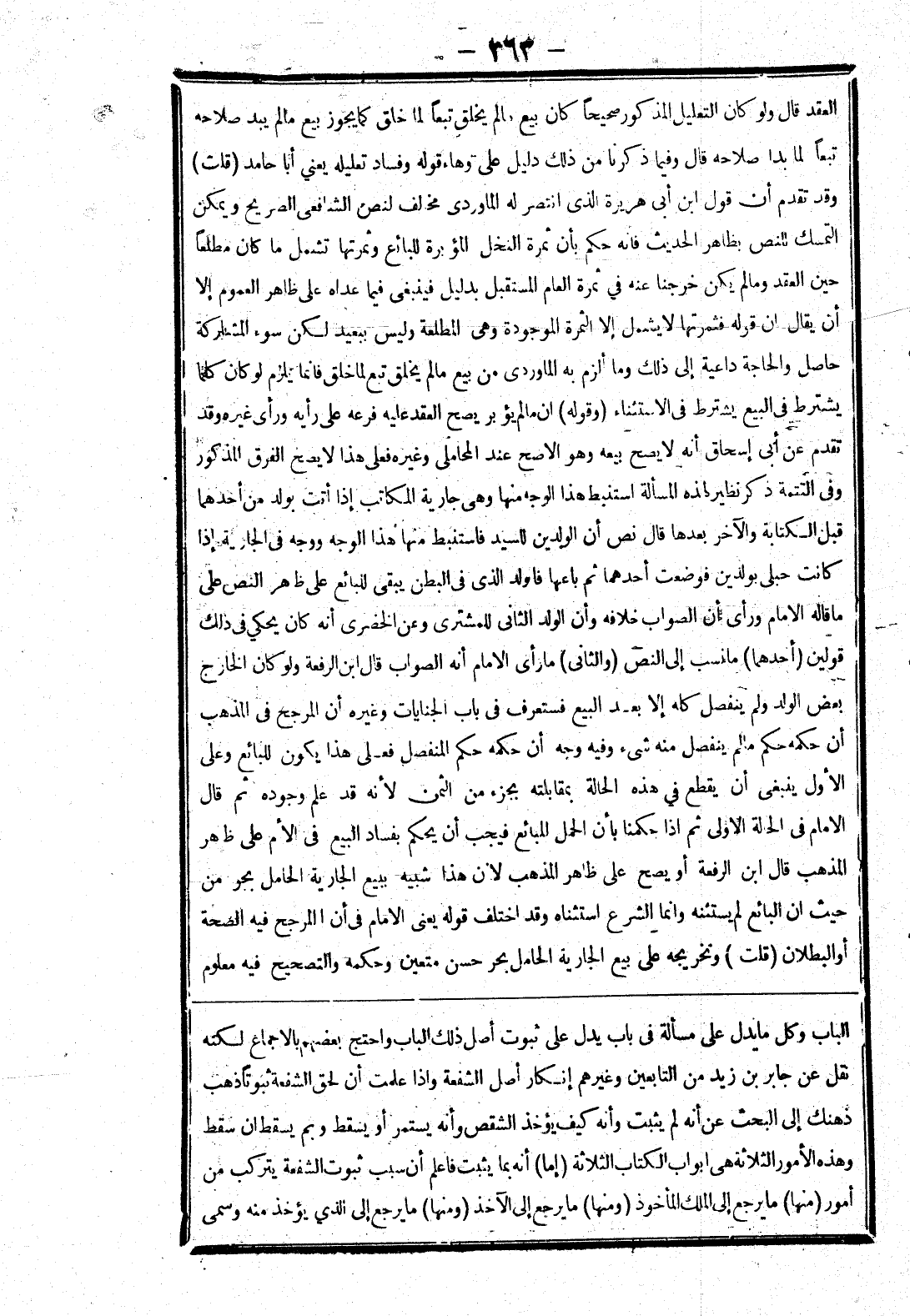نقل عن جابر بن زيد من التابعين غيرهم وإنكار أصل الشفعة وإذا علمت أن لحق الشفعة ثبوتا ذهب ذهنك إلى البحث عن أنه لم يثبت وأنه كيف يؤخذ الشقص وأنه يستمر أو يسقط وبم يسقط ان سقط وهذه الامور الثلاثة هي ابواب الكتاب الثلاثة (إما) أنه بما يثبت فاعلم أن سبب ثبوت الشفعة يتركب من أمور (منها) ما يرجع إلى الملك المأخوذ (ومنها) ما يرجع إلى الآخذ (ومنها) ما يرجع إلى الذي يؤخذ منه وسمى