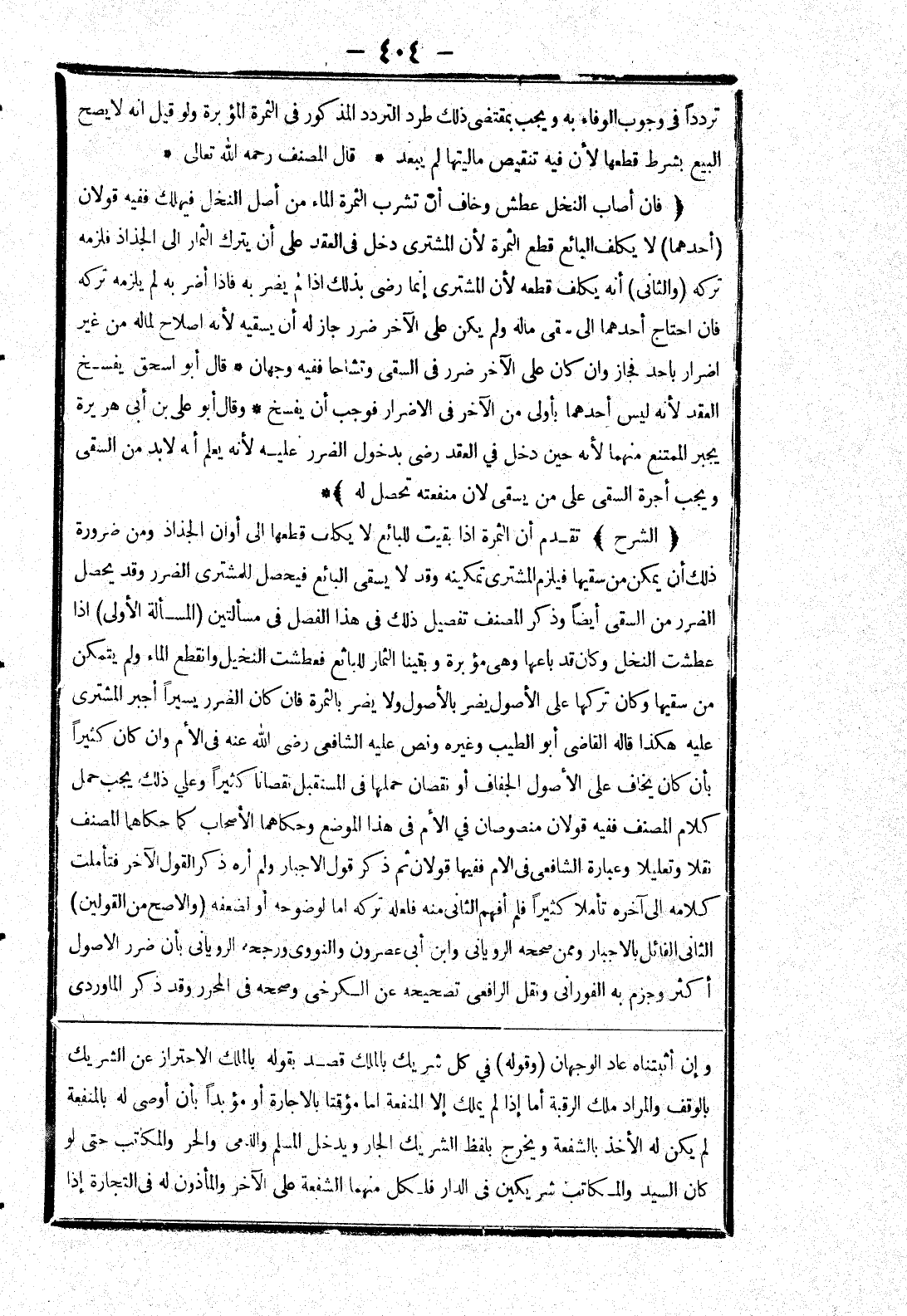 وإن أثبتناه عاد الوجهان (وقوله) في كل شريك بالملك قصد بقوله بالملك الاحتراز عن الشريك بالوقف والمراد ملك الرقبة أما إذا لم يملك إلا المنفعة اما مؤقتا بالاجارة أو مؤبدا بأن أوصى له بالمنفعة لم يكن له الاخذ بالشفعة ويخرج بلفظ الشريك الجار ويدخل المسلم والذمي والحر والمكاتب حتى لو كان السيد والمكاتب شريكين في الدار فلكل منهما الشفعة على الآخر والمأذون له في التجارة إذا