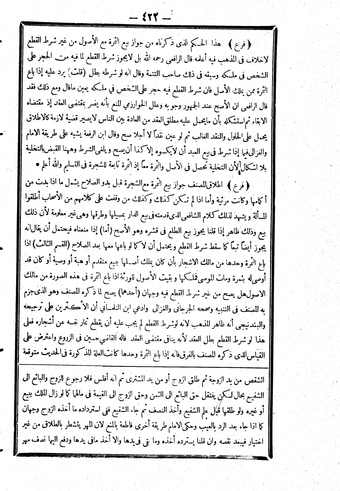 الشقص من يد الزوجة ثم طلق الزوج أو من يد المشترى ثم انه أفلس فلا رجوع للزوج والبائع إلى الشفيع بحال لكن ينتقل حق البائع إلى الثمن وحق الزوج إلى القيمة في مالهما كما لو زال الملك ببيع أو غيره ولو طلهما قبل علم الشفيع واخذ النصف ثم جاء الشفيع ففى استرداده ما أخذه الزوج وجهان كما إذا جاء بعد الرد بالعيب وحكى الامام طريقة أخرى قاطعة بالمنع لان المهر يتشطر بالطلاق من غير اختيار فيبعد نقصه وان قلنا يسترده أخذه وما بقى في يدها والا أخذ ما في يدها ودفع إليها نصف مهر