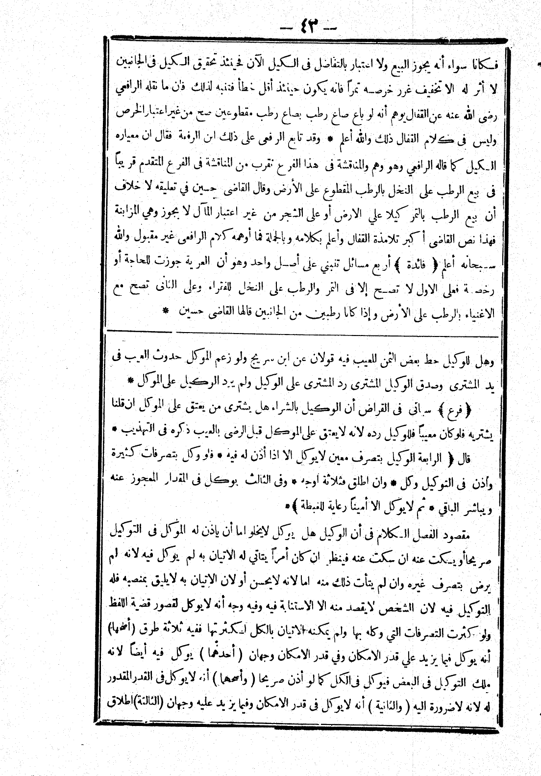وفى الثالث يوكل في المقدار المعجوز عنه ويباشر الباقي.