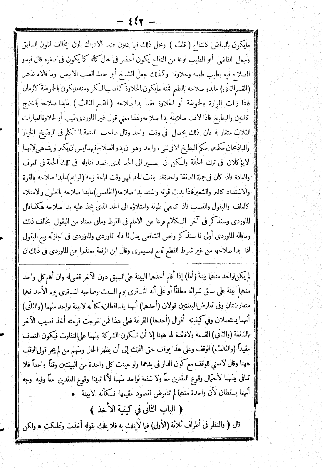 (الباب الثاني في كيفية الاخذ) قال (والنظر في أطراف ثلاثة (الاول) فيما لا يملك به فلا يملك بقوله أخذت وتلمكت.