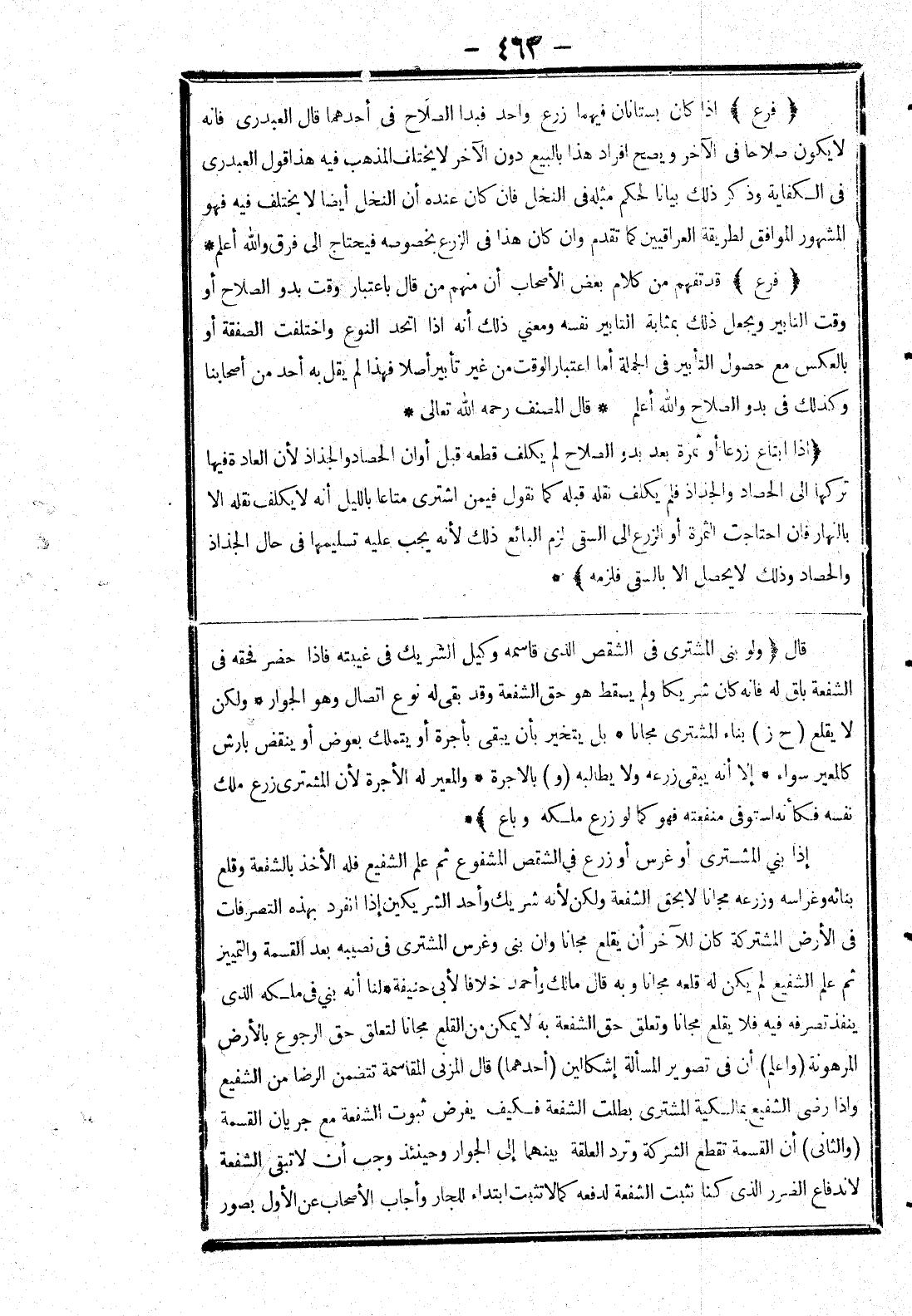 لنا أنه بني في ملكه الذي ينفذ تصرفه فيه فلا يقلع مجانا وتعلق حق الشفعة به لا يمكن من القلع مجانا لتعلق حق الرجوع بالارض المرهونة (واعلم) أن في تصوير المسألة إشكالين (أحدهما) قال المزني المقاسمة تتضمن الرضا من الشفيع وإذا رضى الشفيع بمالكية المشترى بطلت الشفعة فكيف يفرض ثبوت الشفعة مع جريان القسمة