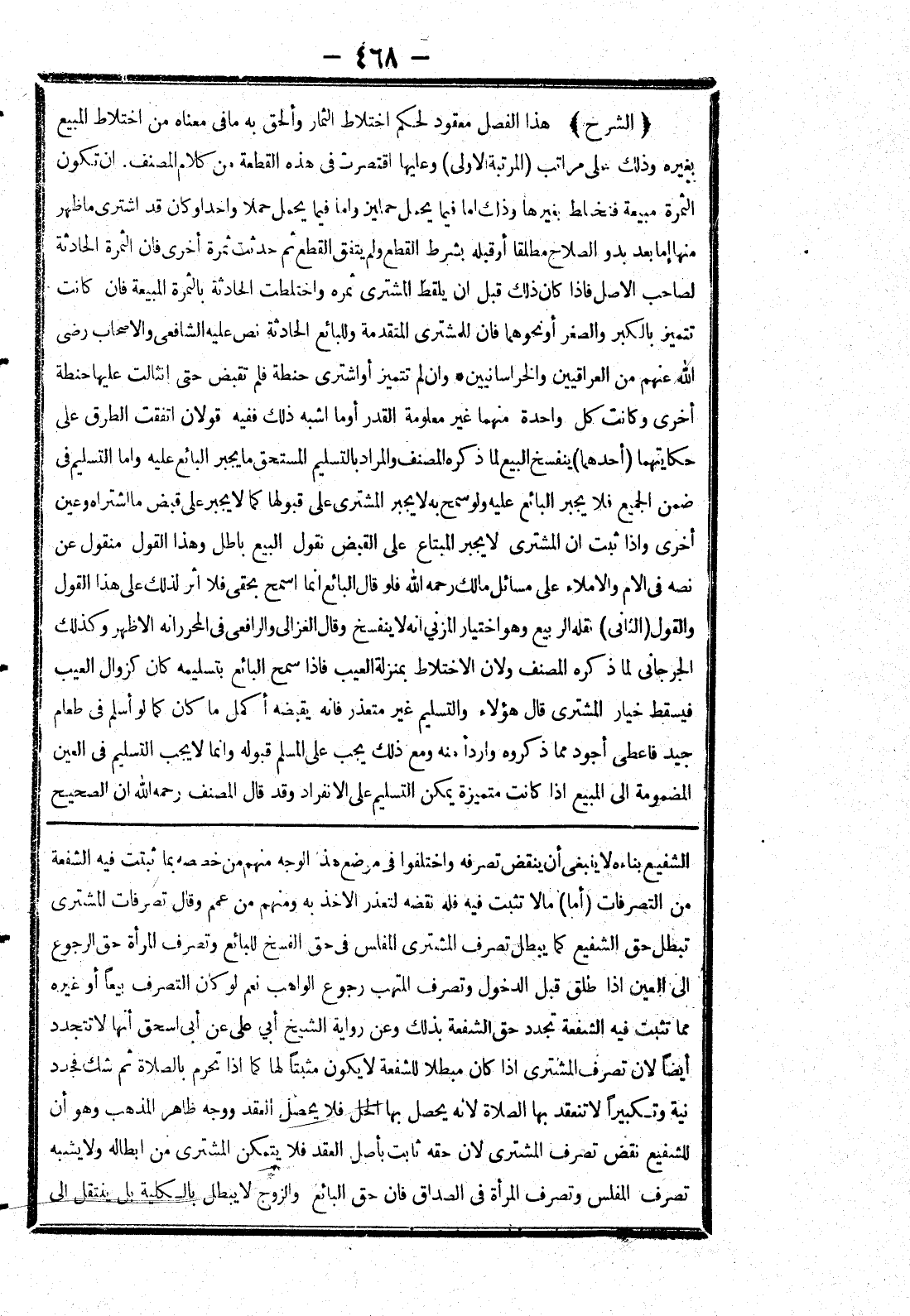 الشفيع بناءه لا ينبغي أن ينقض تصرفه واختلفوا في موضع هذا الوجه منهم من خصصه بما ثبتت فيه الشفعة من التصرفات (أما) مالا تثبت فيه فله نقضه لتعذر الاخذ به ومنهم من عمم وقال تصرفات المشترى تبطل حق الشفيع كما يبطل تصرف المشترى المفلس في حق الفسخ للبائع وتصرف المرأة حق الرجوع إلى العين إذا طلق قبل الدخول وتصرف المتهب رجوع الواهب نعم لو كان التصرف بيعا أو غيره مما تثبت فيه الشفعة تجدد حق الشفعة بذلك وعن رواية الشيخ أبي على بن أبي اسحق أنها لاتتجدد أيضا لان تصرف المشترى إذا كان مبطلا للشفعة لا يكون مثبتا لها كما إذا تحرم بالصلاة ثم شك فجدد نية وتكبيرا لا تنعقد بها الصلاة لانه يحصل بها الحل فلا يحصل العقد ووجه ظاهر المذهب وهو أن للشفيع نقض تصرف المشترى لان حقه ثابت بأصل العقد فلا يتمكن المشترى من ابطاله ولا يشبه تصرف المفلس وتصرف المرأة في الصداق فان حق البائع والزوج لا يبطل بالكلية بل ينتقل إلى