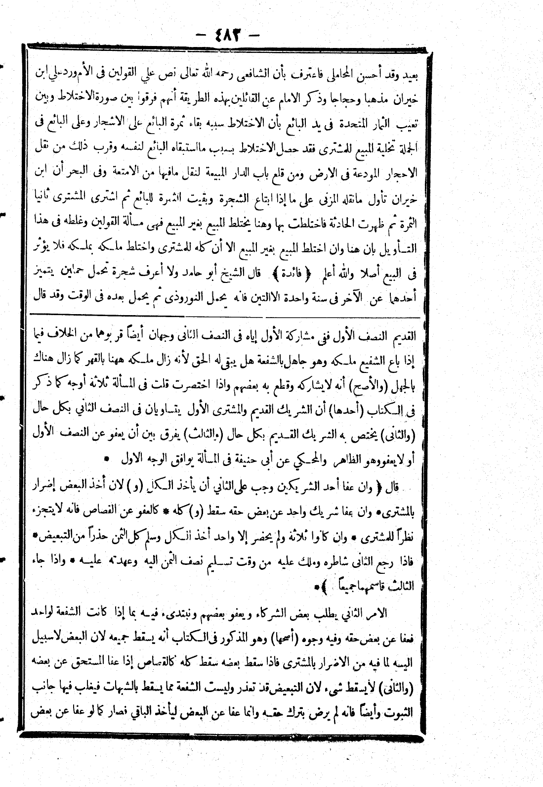 إليه لما فيه من الاضرار بالمشترى فإذا سقط بعضه سقط كله كالقصاص إذا عفا المستحق عن بعضه (والثانى) لا يسقط شئ لان التبعيض قد تعذر وليست الشفعة مما يسقط بالشبهات فيغلب فيها جانب الثبوت وأيضا فانه لم يرض بترك حقه وانما عفا عن البعض ليأخذ الباقي فصار كما لو عفا عن بعض