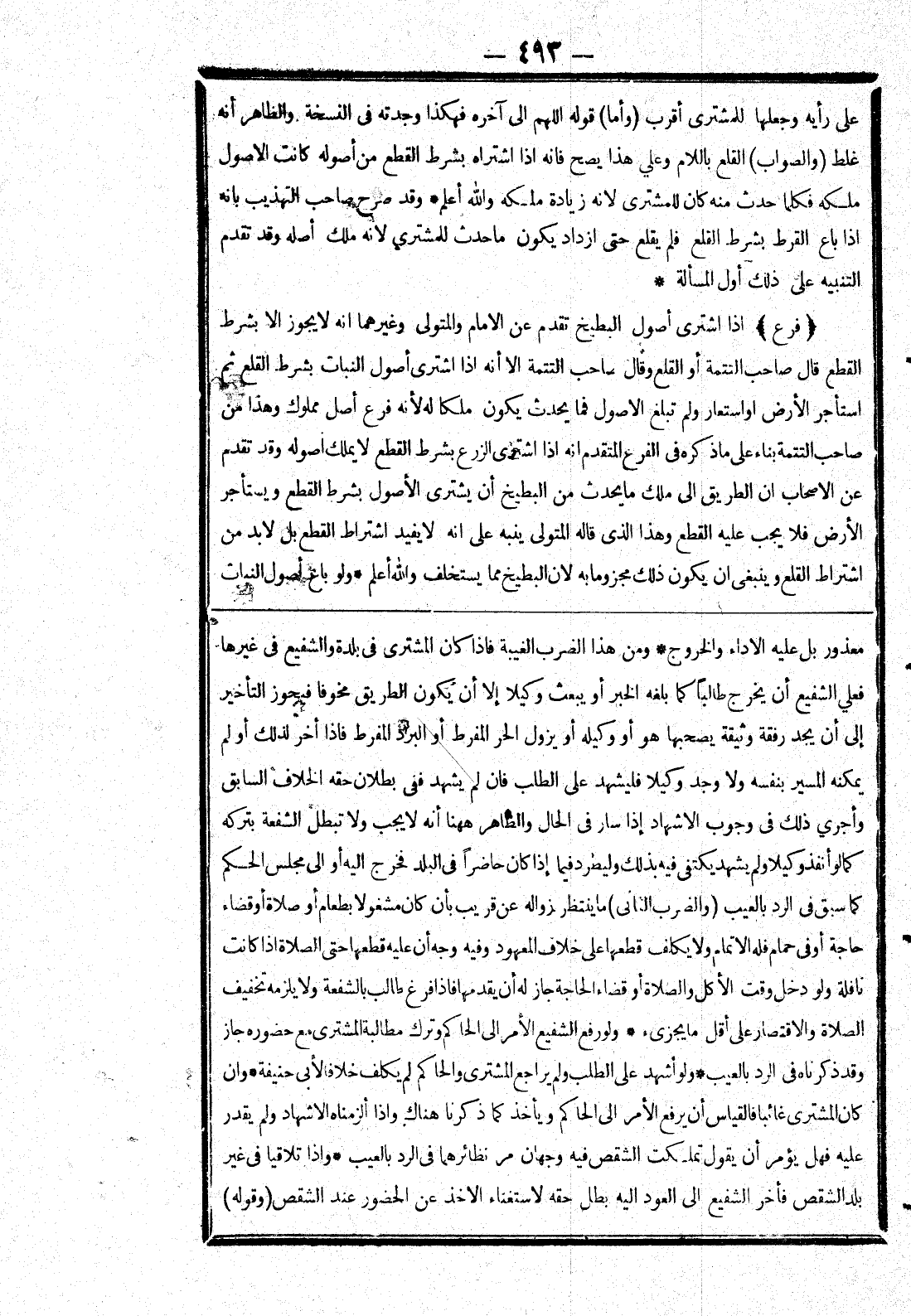 ومن هذا الضرب الغيبة فإذا كان المشترى في بلدة والشفيع في غيرها فعلى الشفيع أن يخرج طالبا كما بلغه الخبر أو يبعث وكيلا إلا أن يكون الطريق مخوفا فيجوز التأخير إلى أن يجد رفقة وثيقة يصحبها هو أو وكيله أو يزول الحر المفرط أو البرد المفرط فإذا أخر لذلك أو لم يمكنه المسير بنفسه ولا وجد وكيلا فليشهد على الطلب فان لم يشهد ففي بطلان حقه الخلاف السابق وأجري ذلك في وجوب الاشهاد إذا سار في الحال والظاهر ههنا أنه لا يجب ولا تبطل الشفعة بتركه كما لو أنفذو كيلا ولم يشهد يكتفي فيه بذلك وليطرف فيما إذا كان حاضرا في البلد فخرج إليه أو إلى مجلس الحكم كما سبق في الرد بالعيب (والضرب الثاني) ما ينتظر زواله عن قريب بأن كان مشغولا بطعام أو صلاة أو قضاء حاجة أو في حمام فله الاتمام ولا يكلف قطعها على خلاف المعهود وفهى وجه أن عليه قطعها حتى الصلاة إذا كانت نافلة ولو دخل وقت الاكل والصلاة أو قضاء الحاجة جاز له أن يقدمها فإذا فرغ طالب بالشفعة ولا يلزمه تخفيف الصلاة والاقتصار على أقل ما يجزئ.