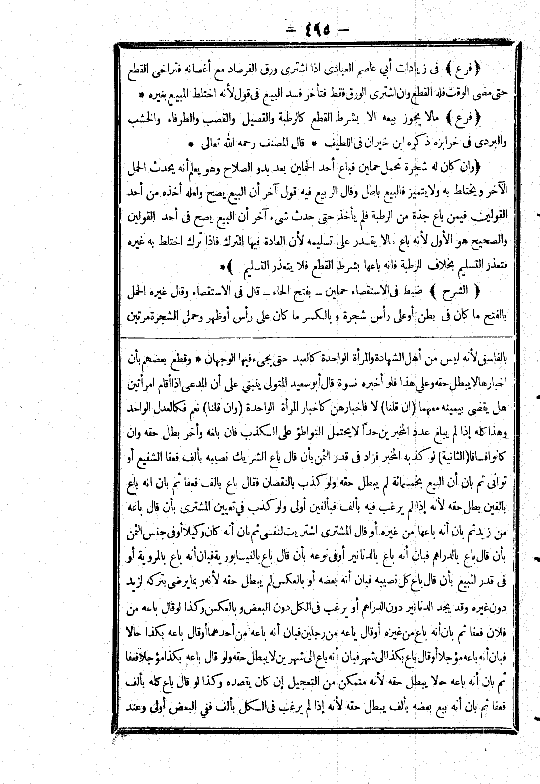وهذا كله إذا لم يبلغ عدد المخبرين حدا لا يحتمل التواطؤ عل الكذب فان بلغه وأخر بطل حقه وان كانوا فساقا (الثانية) لو كذبه المخبر فزاد في قدر الثمن بأن قال باع الشريك نصيبه بألف فعفا الشفيع أو توانى ثم بان أن البيع بخمسائة لم يبطل حقه ولو كذب بالنقصان فقال باع بالف فعفا ثم بان انه باع بالفين بطل حقه لانه إذا لم يرغب فيه بألف فبألفين أولى ولو كذب في تعيين المشترى بأن قال باعه من زيد ثم بان أنه باعها من غيره أو قال المشترى اشتريت لنفسي ثم بان أنه كان وكيلا أو في جنس الثمن بأن قال باع بالدراهم فبان أنه باع بالدنانير أو في نوعه بأن قال باع بالنيسابورية فبان أنه باع بالمروية أو في قدر المبيع بأن قال باع كل نصيبه فبان أنه بعضه أو بالعكس لم يبطل حفه لانه ربما يرضى بتركه لزيد دون غيره وقد يجد الدنانير دون الدراهم أو يرغب في الكل دون البعض وبالعكس وكذا لو قال باعه من فلان فعفا ثم بان أنه باع من غيره أو قال باعه من رجلين فبان أنه باعه من أحدهما أو قال باعه بكذا حالا فبان أنه باعه مؤجلا أو قال باع بكذا إلى شهر فبان أنه باع إلى شهرين لا يبطل حقه ولو قال باعه بكذا مؤجلا فعفا ثم بان أنه باعه حالا يبطل حقه لانه متمكن من التعجيل إن كان يقصده وكذا لو قال باع كله بألف فعفا ثم بان أنه بيع بعضه بألف يبطل حقه لانه إذا لم يرغب في الكل بألف ففي البعض أولى وعند