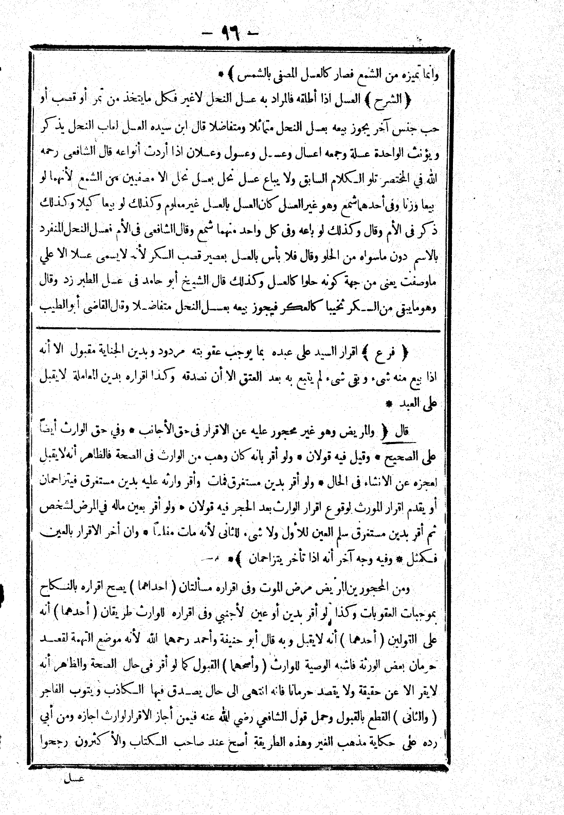 ومن المحجورين المريض مرض الموت وفى اقراره مسألتان (احدهما) يصح اقراره بالنكاح بموجبات العقوبات وكذا لو أقر بدين أو عين لاجنبي وفى اقراره للوارث طريقتان (أحدهما) أنه على القولين (أحدهما) انه لا يقبل وبه قال أبو حنيفة وأحمد رحمهما الله لانه موضع التهمه لقعد حرمان بعض الورثة فاشبه الوصيه للوارث (وأصحهما) القبول كما لو أقر في حال الصحة والظاهر أنه لايقر الا عن حقيقة ولا يقصد حرمانا فانه انتهى إلى حال يصدق فيها الكاذب ويتوب الفاجر (والثانى) القطع بالقبول وحمل قول الشافعي رضي الله عنه فيمن أجاز الاقرار لوارث اجازه ومن أبي رده على حكاية مذهب الغير وهذه الطريقة أصح عند صاحب الكتاب والاكثرون رجحوا