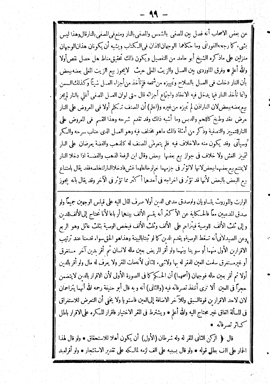 صدق المدعيين معا فالحكاية عن الاكثر أنه يقسم الالف بينهما أرباعا لانا نحتاج إلى الالف للدين وإلى ثلث الالف للوصية فيتزاحم على الالف وثلث الالف فيخص الوصية بثلث عائل وهو الربع وعن الصيدلانى أنه تسقط الوصية ويقدم الدين كما لو ثبتا بالبينة وهذا هو الحق سواء قدمنا عند ترتيب الاقرارين الاول منهما أو سوينا بينهما ولو أقر المريض بعين ماله لانسان ثم أقر بدين آخر مستغرق أو غير مستغرق سلمت العين للمقر له بها ولا شئ للثاني لانه مات المقر ولا يعرف له مال ولو أقر بالدين أولا ثم أقر بعين ماله فوجهان (أصحهما) أن الحكم كما في الصورة الاولى لان الاقرار بالدين لا يتضمن حجرا في العين ألا ترى أنه تنفذ تصرفاته فيه (والثانى) وبه قال أبو حنيفة رحمه الله أنهما يتزاحمان لان لاحد الاقرارين قوة السبق وللآخر الاضافة إلى العين فاستويا ولا يخفى أن التعرض للاستغراق في المسألة اتفاق غير محتاج إليه والله أعلم.