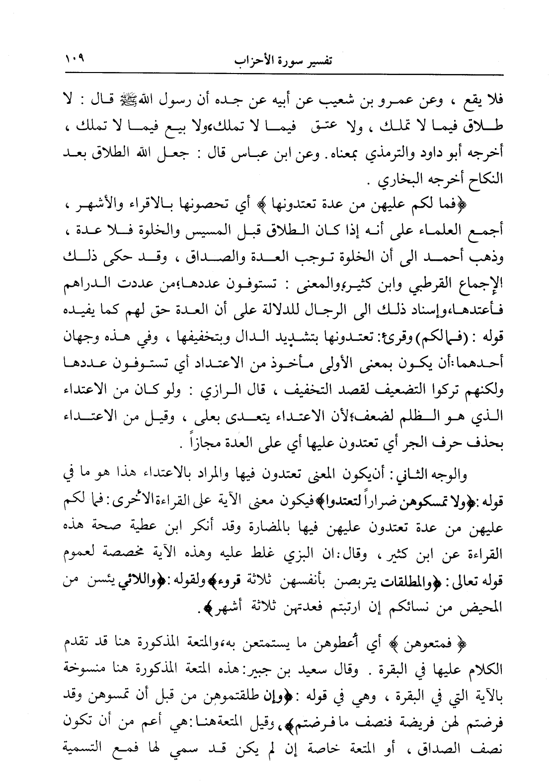 والوجه الثاني: أن يكون المعنى تعتدون فيها والمراد بالاعتداء هذا هو ما في قوله: (ولا تمسكوهن ضراراً لتعتدوا) فيكون معنى الآية على القراءة الأخرى: فما لكم عليهن من عدة تعتدون عليهن فيها بالمضارة وقد أنكر ابن عطية صحة هذه القراءة عن ابن كثير، وقال: إن البزي غلط عليه وهذه الآية مخصصة لعموم قوله تعالى: (والمطلقات يتربصن بأنفسهن ثلاثة قروء) ولقوله: (واللائي يئسن من المحيض من نسائكم إن ارتبتم فعدتهن ثلاثة أشهر).