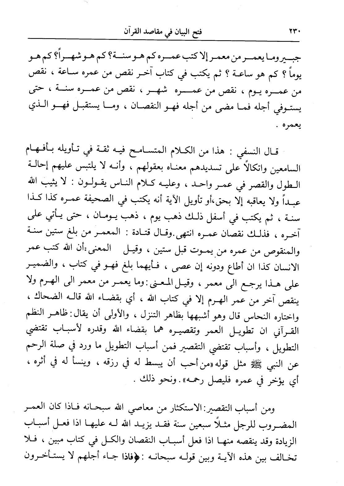 ومن أسباب التقصير: الاستكثار من معاصي الله سبحانه فإذا كان العمر المضروب للرجل مثلاً سبعين سنة فقد يزيد الله له عليها إذا فعل أسباب الزيادة وقد ينقصه منها إذا فعل أسباب النقصان والكل في كتاب مبين، فلا تخالف بين هذه الآية وبين قوله سبحانه: (فإذا جاء أجلهم لا يستأخرون