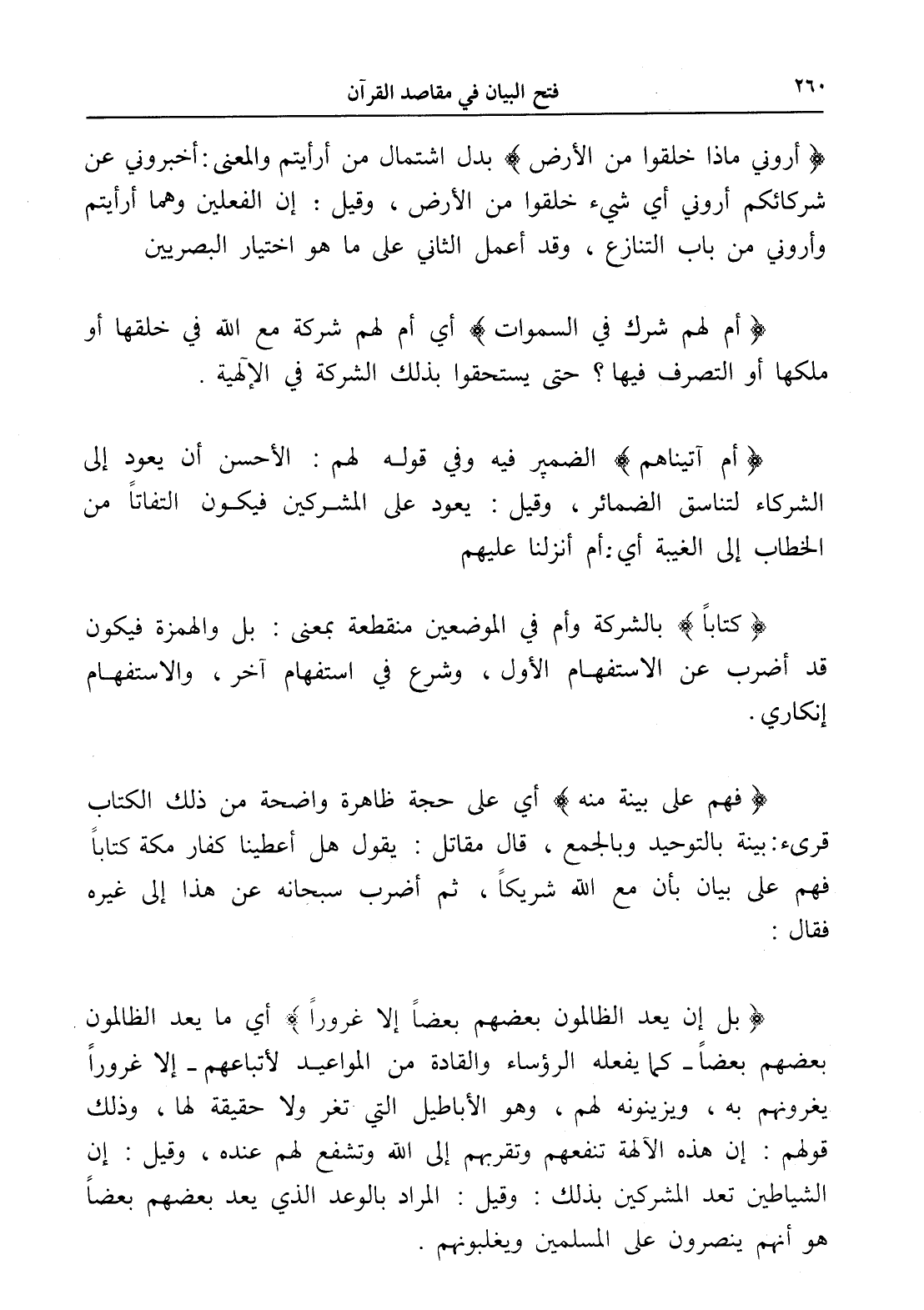 (أم لهم شرك في السموات) أي أم لهم شركة مع الله في خلقها أو لكها أو التصرف فيها؟ حتى يستحقوا بذلك الشركة في الإلهية.