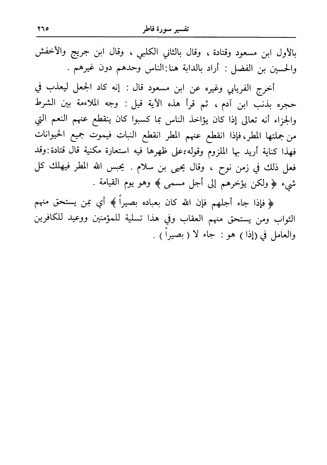 أخرج الفريابي وغيره عن ابن مسعود قال: إنه كاد الجعل ليعذب في حجره بذنب ابن آدم، ثم قرأ هذه الآية قيل: وجه الملاءمة بين الشرط والجزاء أنه تعالى إذا كان يؤاخذ الناس بما كسبوا كان ينقطع عنهم النعم التي من جملتها المطر، فإذا انقطع عنهم المطر انقطع النبات فيموت جميع الحيوانات فهذا كناية أريد بها الملزوم وقوله: على ظهرها فيه استعارة مكنية قال قتادة: وقد فعل ذلك في زمن نوح، وقال يحيى بن سلام. يحبس الله المطر فيهلك كل شيء (ولكن يؤخرهم إلى أجل مسمى) وهو يوم القيامة.