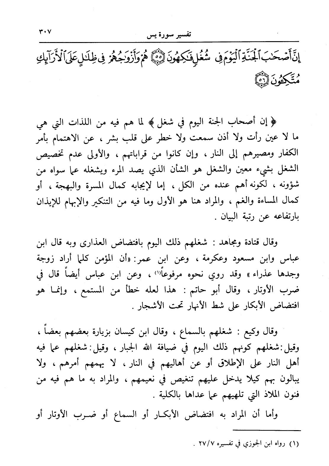 إِنَّ أَصْحَابَ الْجَنَّةِ الْيَوْمَ فِي شُغُلٍ فَاكِهُونَ (55) هُمْ وَأَزْوَاجُهُمْ فِي ظِلَالٍ عَلَى الْأَرَائِكِ مُتَّكِئُونَ (56)